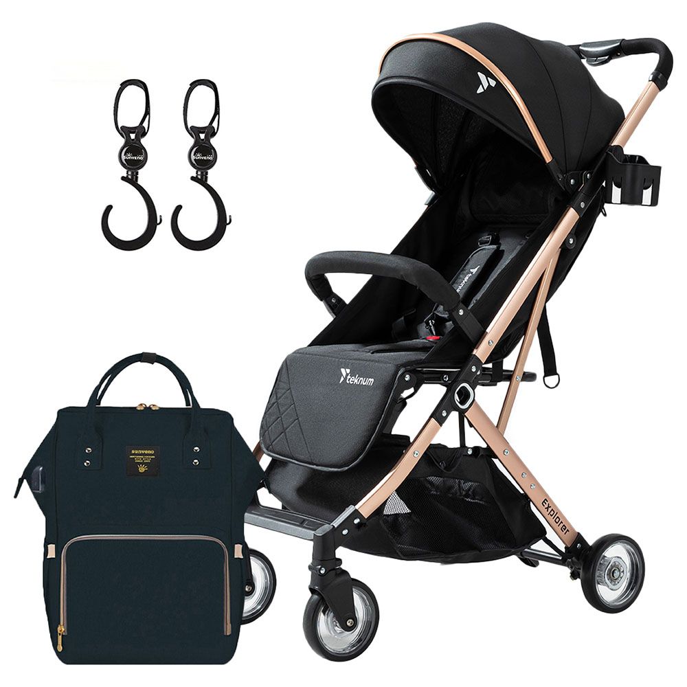 For the Traveller Moms, we have a terrific combo of Teknum Stroller, Sunveno Diaper Bag and Stroller Hooks! Teknum Explorer Travel Stroller is a premium travel stroller with being lightweight and Air cabin friendly! This Teknum Stroller offers One Second Single Hand Folding/Unfolding and Pushing. It is very easy to fold and unfold within 1 second. The Unique Push Trolley Handle makes it extra convenient to simply stroll with it when not in use. Features a wide seat base and multi-position recline backrest from 95degree - 180degree.