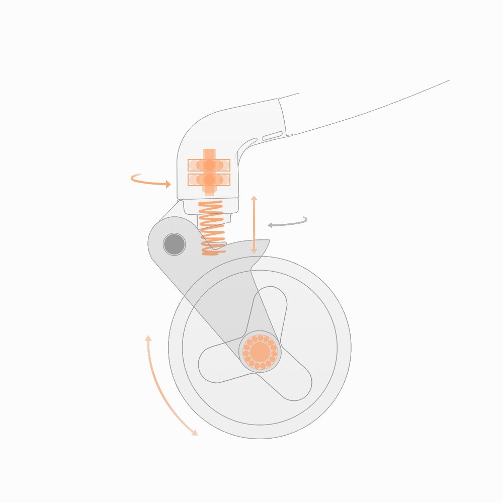 - Front wheel with 360 degree swivel & suspension and can be locked