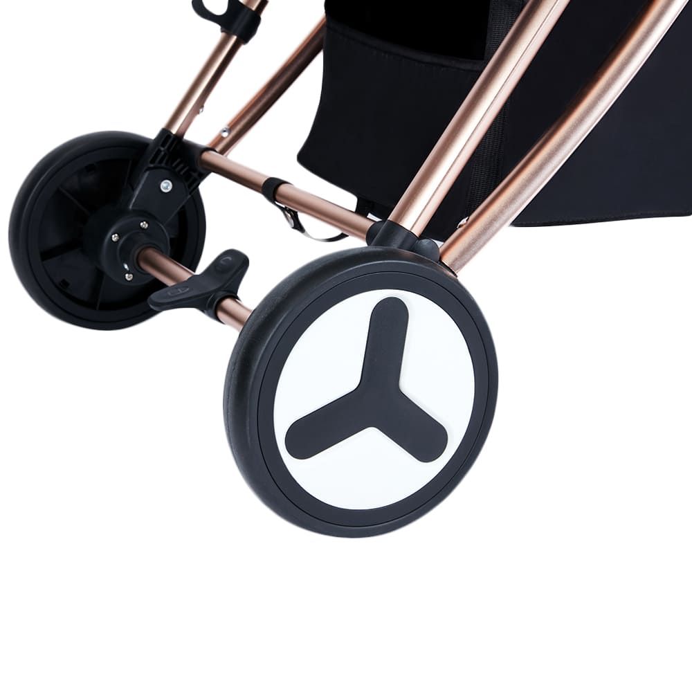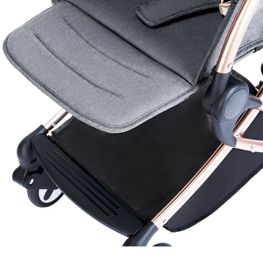 Teknum Feather Lite is extremely stylish, light weight and best quality stroller you will ever find! This stroller can be folded in seconds with just one push on the handle bar and can be carried with ease. The soft baby belly bar doubles up as a practical handle for carrying the stroller in the car, bus or air travel. Teknum is a German brand and the entire product range is designed and made from highest quality standard. Your baby will love the drive on this light and mobile aluminium base with wheels and suspension that are shock proof, can rotate 360 degree and have front and back lock system. The high-quality, breathable, padded seat provides extra comfort for your baby. Stroller can be positioned to different seating & sleeping positions using the back strap, even the foot rest can be multi-positioned according to the baby's need. The large canopy can be extended and pulled back according to the protection needed from sun, rain or wind. An extra mesh net cover is also provided to keep the baby safe from insects. Match your style with the gold I-phone like colour and finish.