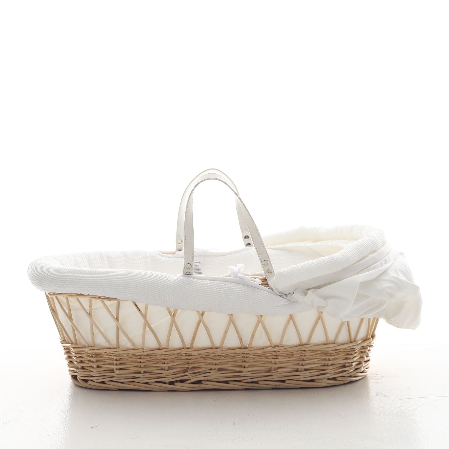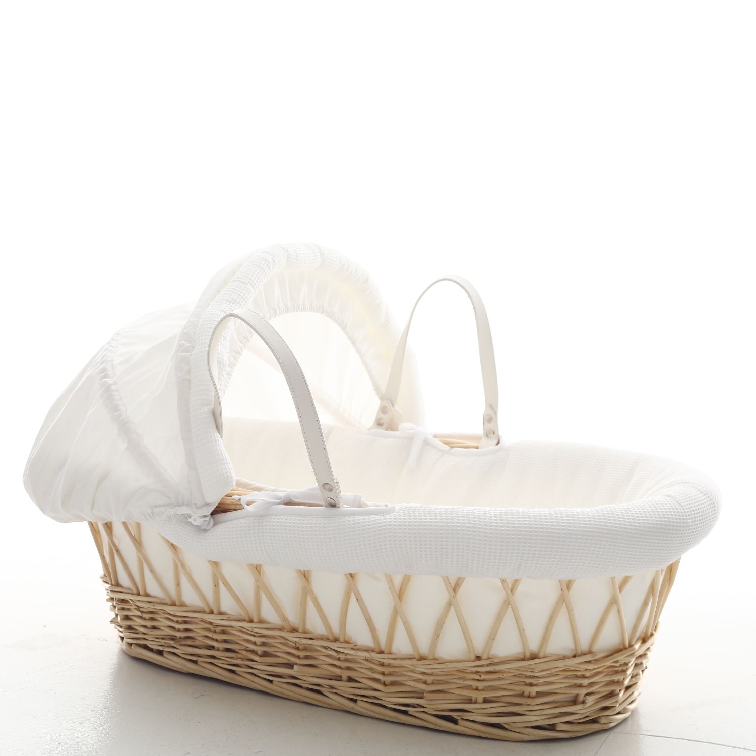 Teknum Infant Wicker Moses Basket With White Waffle Beddings - Wooden Brown