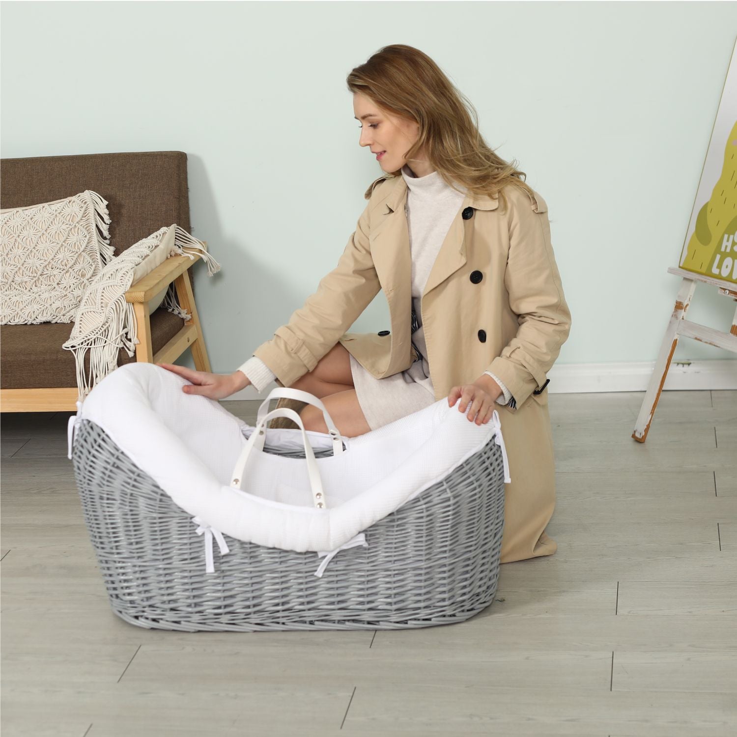 Under no circumstances should you carry your baby in the Moses basket. Handles are for easy portability of the Moses Basket only. Handmade with Love. Perfect Gift for New Born or for Baby Shower. Can be paired with Teknum Wicker Pod Moses Basket Rocker Stand.
