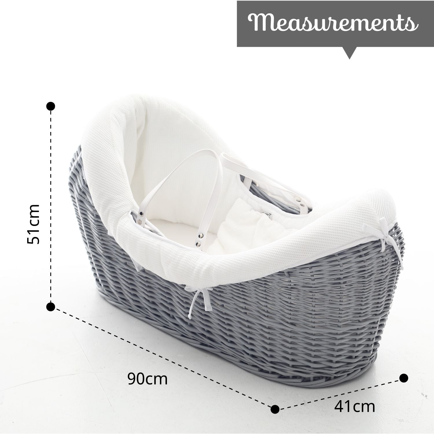 Teknum Infant Wicker Pod Moses Basket with White Waffle Beddings is every Mom's dream for her New Born! This beautiful addition to your baby's nursery creates a lovely cozy sleeping space for them. The Soft Waffle Bedding is so soft to your new born's delicate skin and Suitable from birth until the baby can sit themselves. The basket is made from sturdy & lightweight willow.
