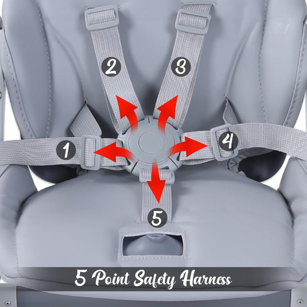 - Comes with a 5-point Safety Belt & legs with non-slip padding.