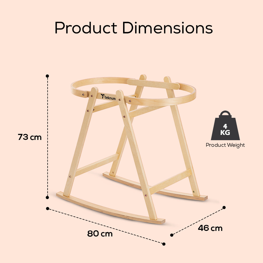 - Stable, Durable, and Safe Stand : The included wooden stand elevates the basket to an optimal height (73 cm) for easy access and gentle supervision. Built to support up to 15 kg, it features a smooth finish with no sharp edges, ensuring total safety. The open-frame design promotes excellent airflow, keeping your baby’s sleep environment fresh. Doubles up as a rocker too!