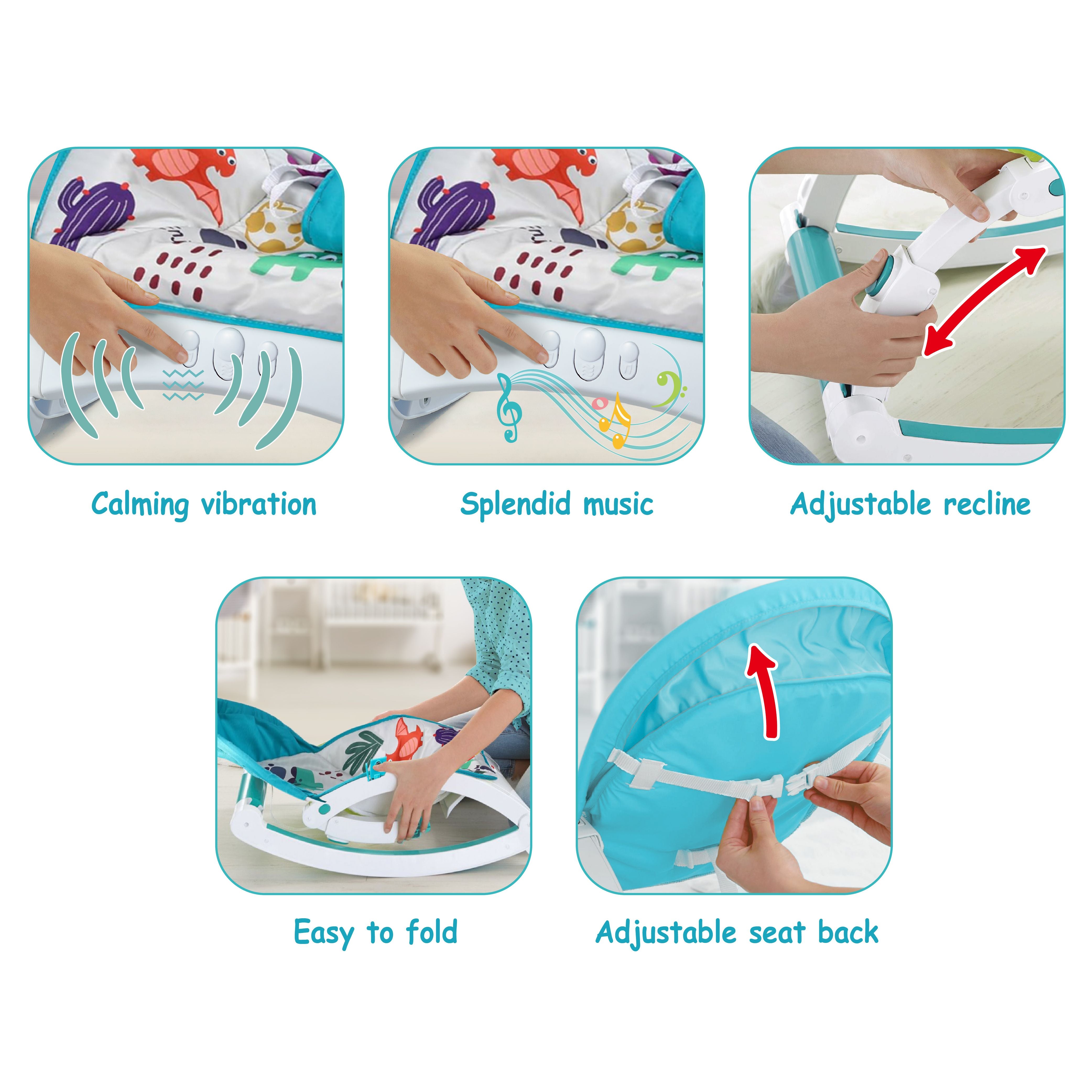 - Playful Dinosaur Print & Soothing Features: Engaging dinosaur design with calming vibrations and delightful music to comfort your baby.