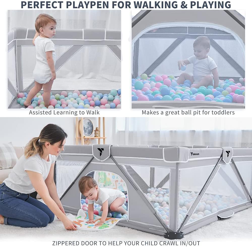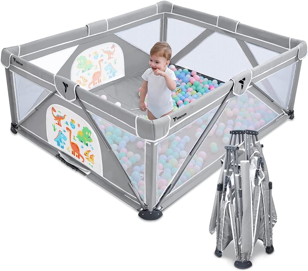 - Quick Fold & Unfold Design: Designed for ultimate convenience, the Teknum Playpen folds and unfolds in just a minute, making it perfect for outdoors or frequent travelers. The compact folded size of 98x23x23 cm ensures easy storage and portability.