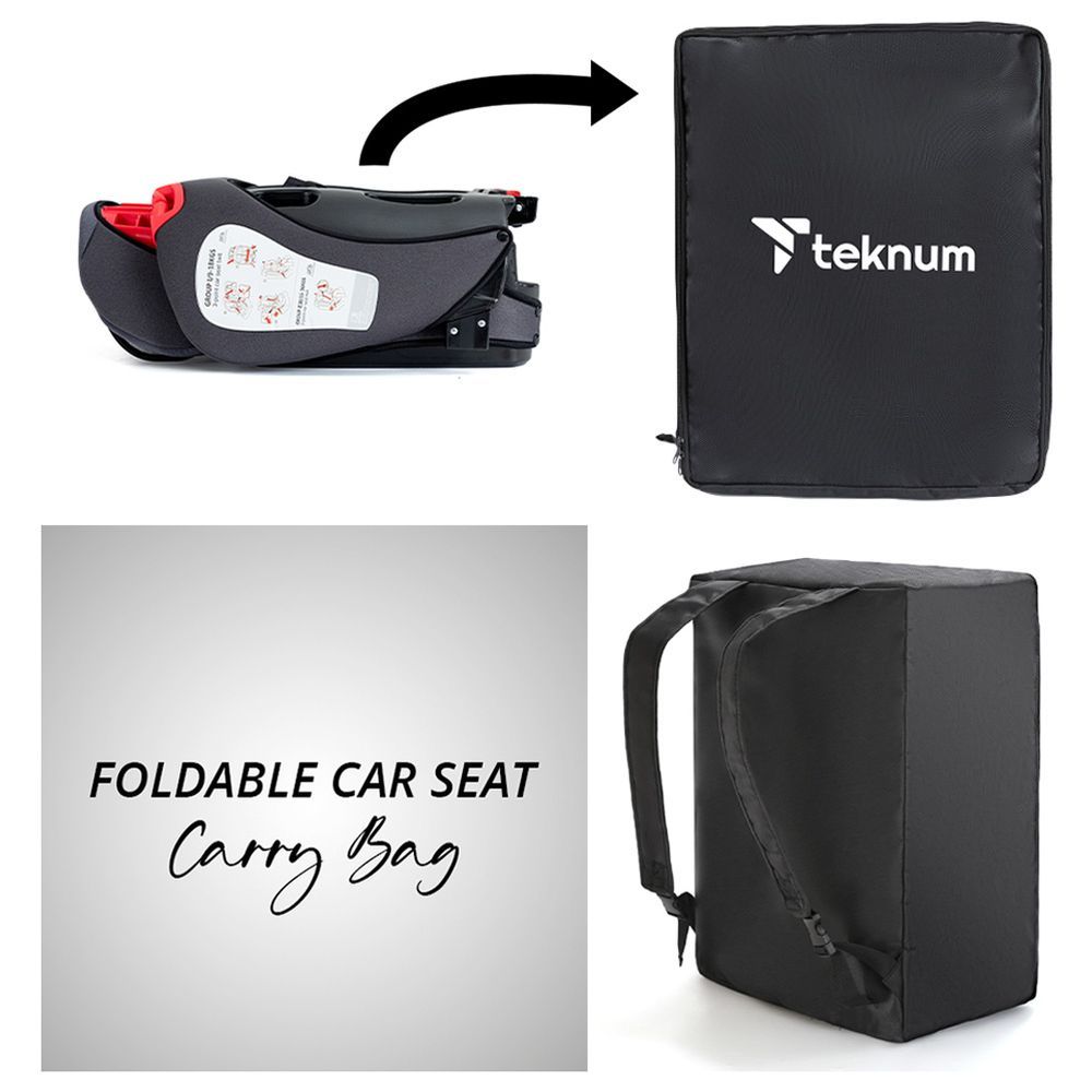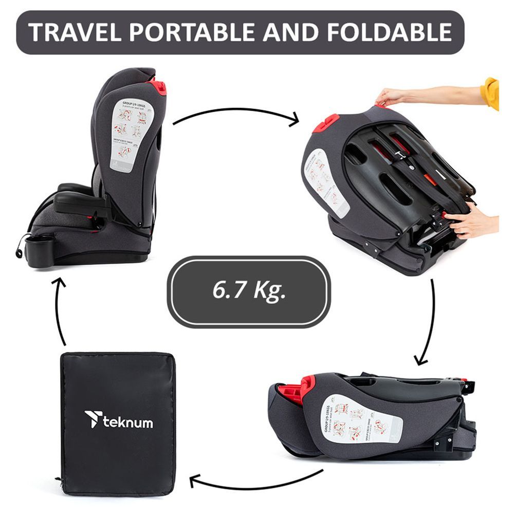 The Teknum Pack and Go Foldable Car Seat is from group 1,2 and 3 means perfect from 9 months to 12 years of Age. Ideal for weight of 9Kgs to 36Kgs. Easy to Fold when need to carry on trip. Easy to Store in Car boot Space and extremely Portable. Air Cabin Friendly. Backpack Style Carry Bag for Storing the Car Seat. Pack and Go Foldable Car seat transforms with your growing child, thanks to the 6 level headrest position. The Car Seat is extendable from 69 cm to 80 cm. Hand Support for the Kids to sit comfortably. Coffee Cup Holder for Keeping Sipper or Milk bottle without worry of spillage. Ergonomically Designed for extra comfort. 5 point Safety Harness with 2 level adjustments. Extra cushion for added comfort. Easy to Install and Universal Fit for all Kinds of Cars. Removable Covers for Cleaning and Washing. EN Certified: Certified European Standards, ECR44/4