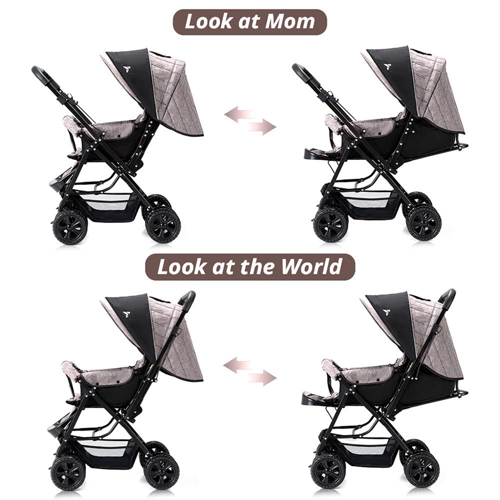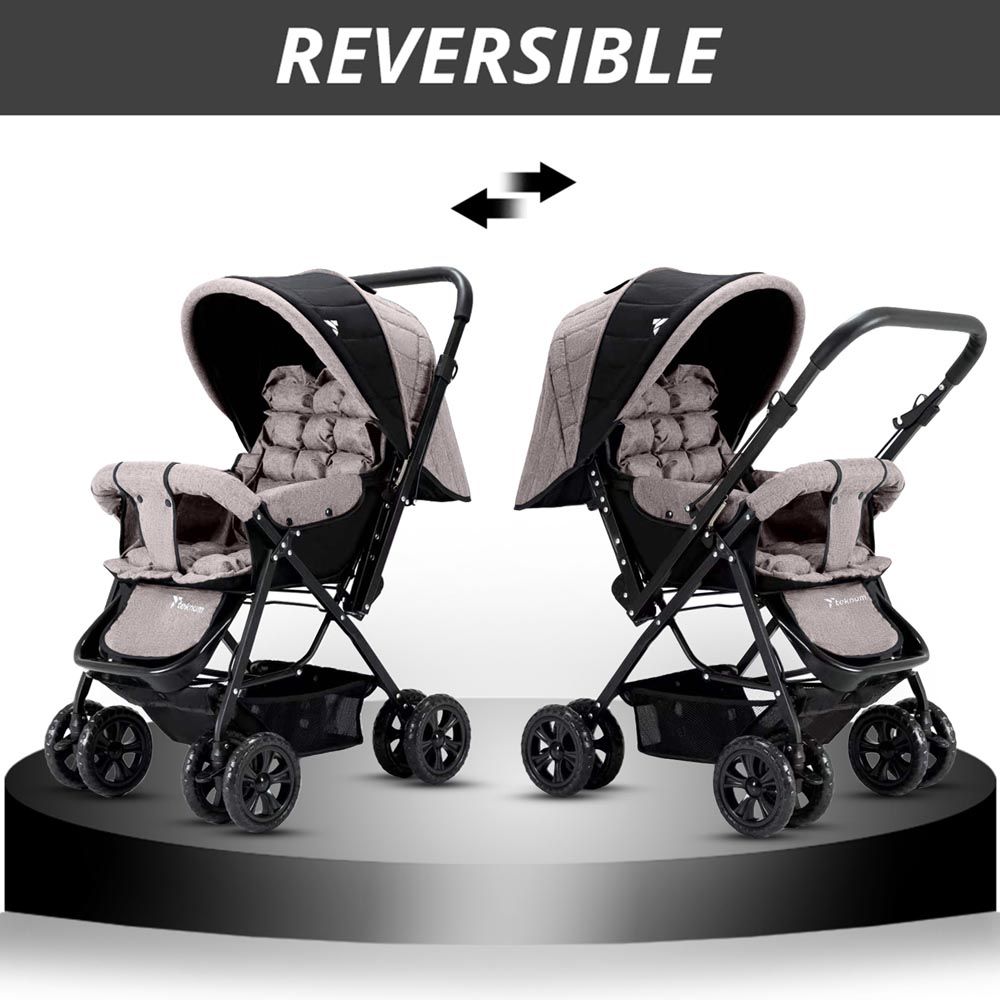 Teknum Look At Me Reversible Stroller is a perfect choice for a Robust Reversible Stroller. The handle can be easily adjusted to the view for baby looking at the mom or baby looking at the world! This Stroller is so smooth to ride and slim to pass though the standard gates. The seat can be inclined flat to let the baby sleep comfortably. Made of linen and cushioned seats provide absolute comfort for your little one.