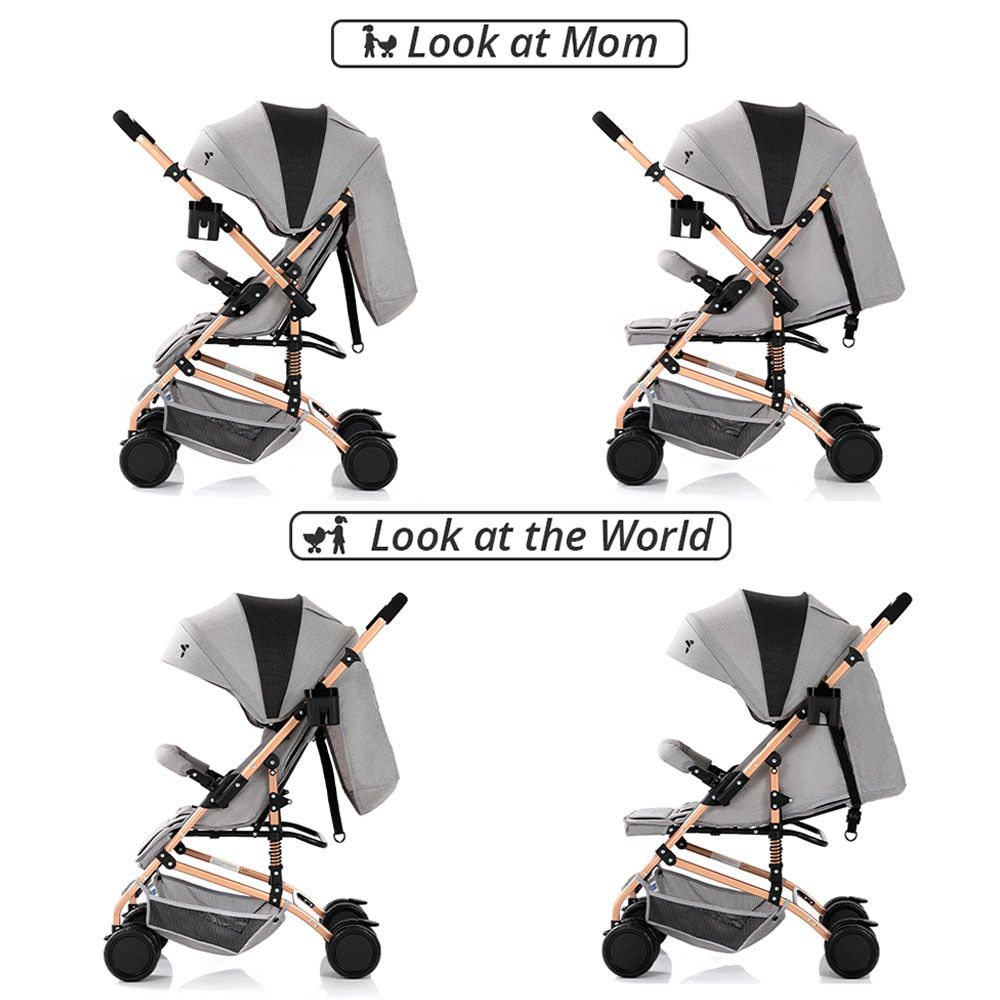 - Reversible seat allows for parent-facing or outward views