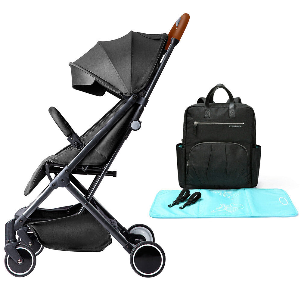- Features a wide seat base and multi-position recline backrest from 95°-180°. Adjustable canopy is designed to protect your baby from harsh weathers. You can always observe the status of your baby through a patch of transparent skylight window. Lovely fabric and colours will make you fall in love with it! Feels like travelling with Air!
