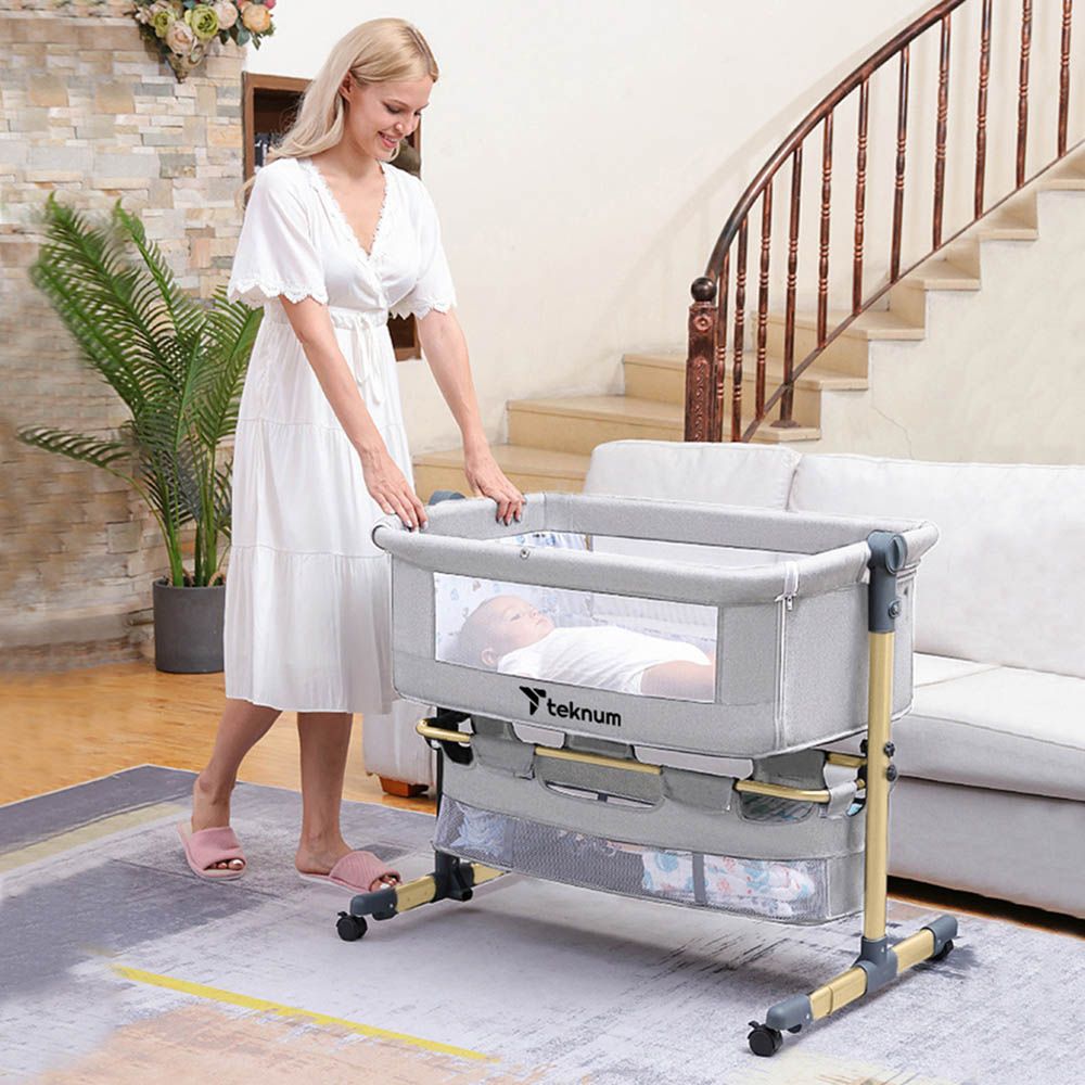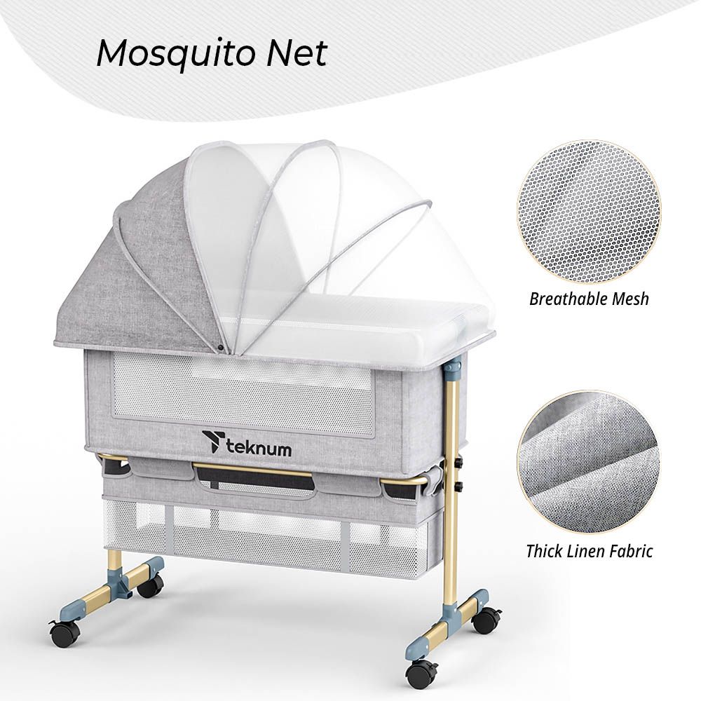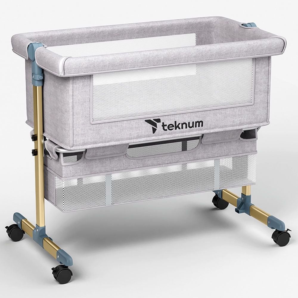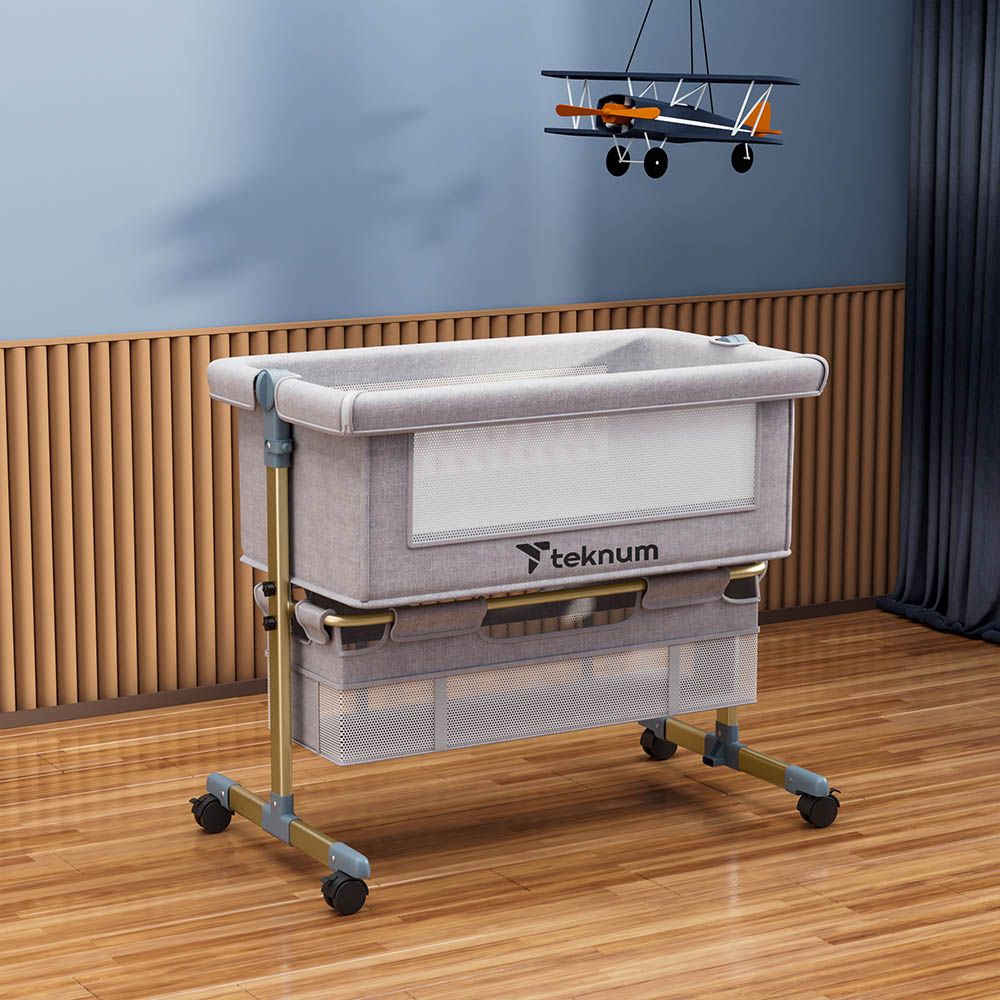 Teknum Bedside Crib is the best for both mum and the baby. The Newborn recognizes mum with the mother's scent and breathing sound. This bedside crib can be conveniently be placed next to the bed and lock wheels, so it doesn't move.