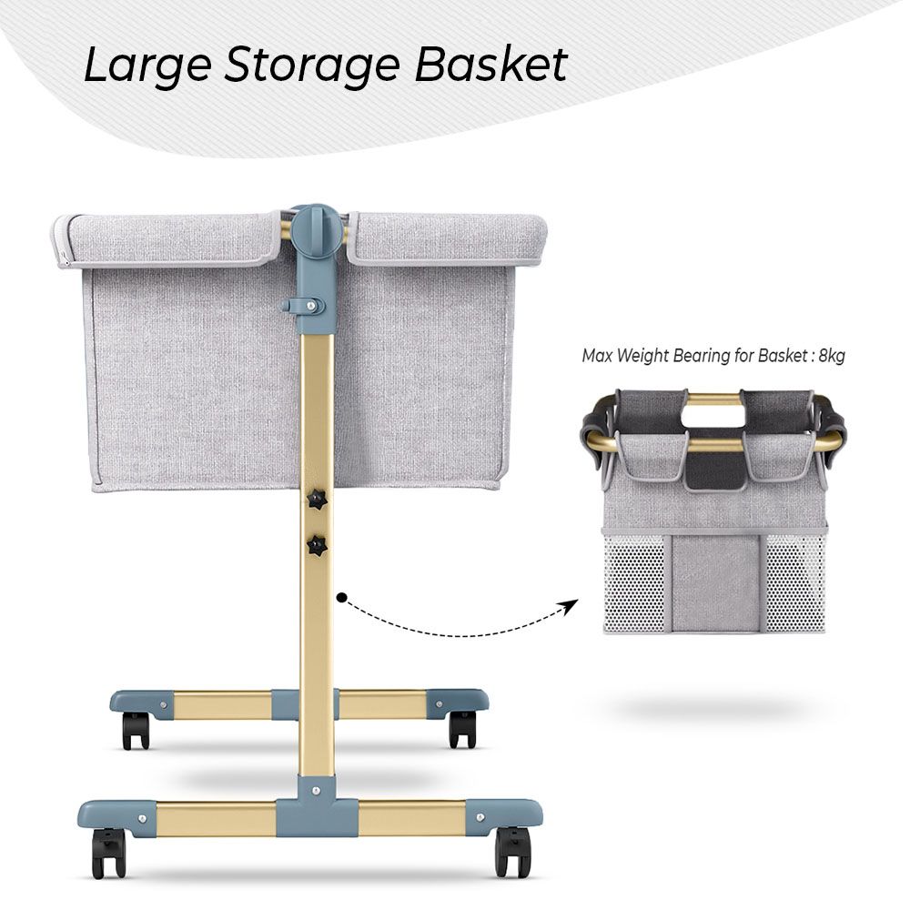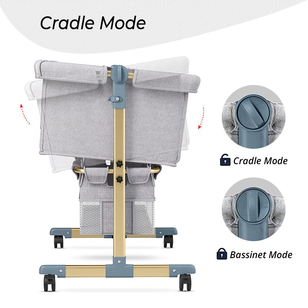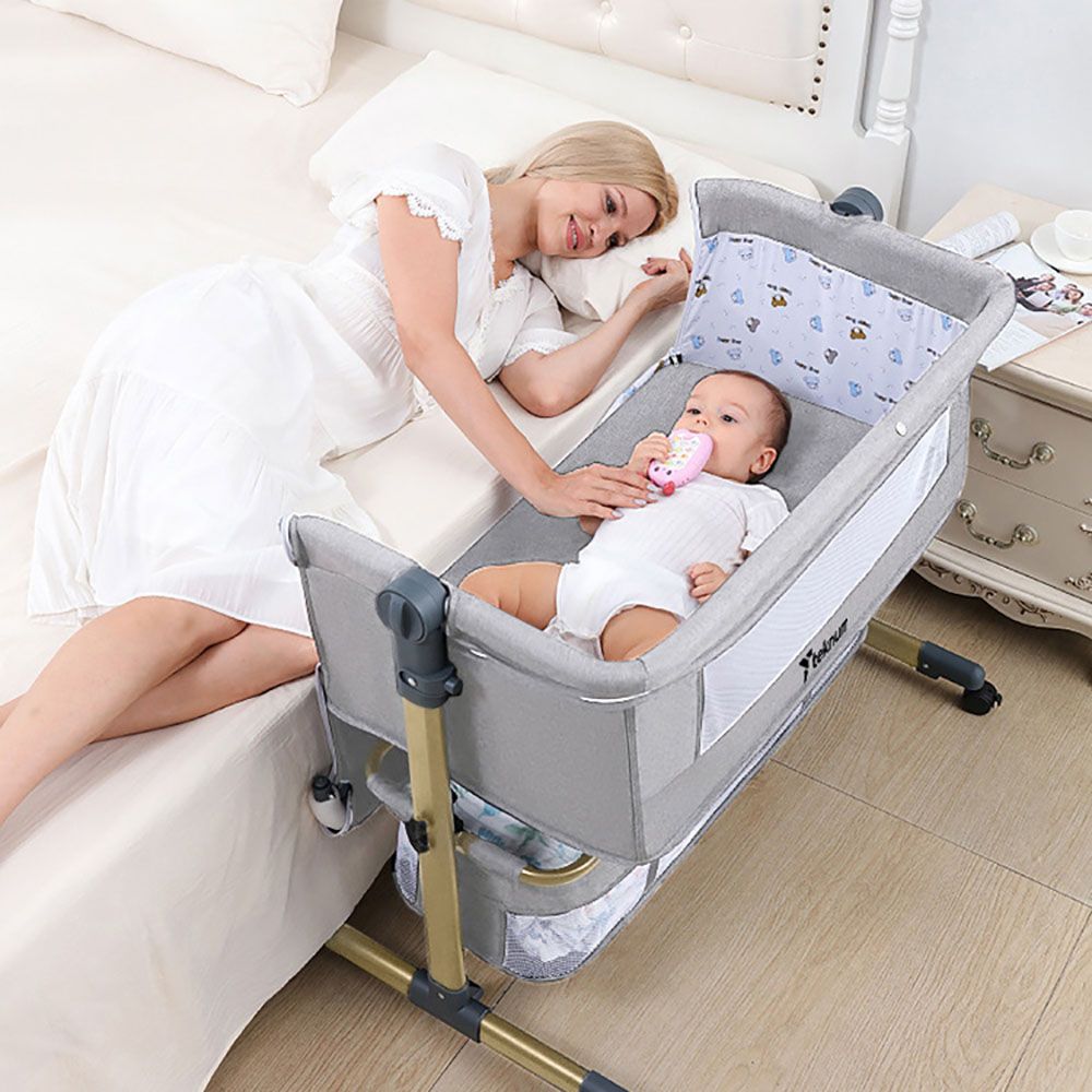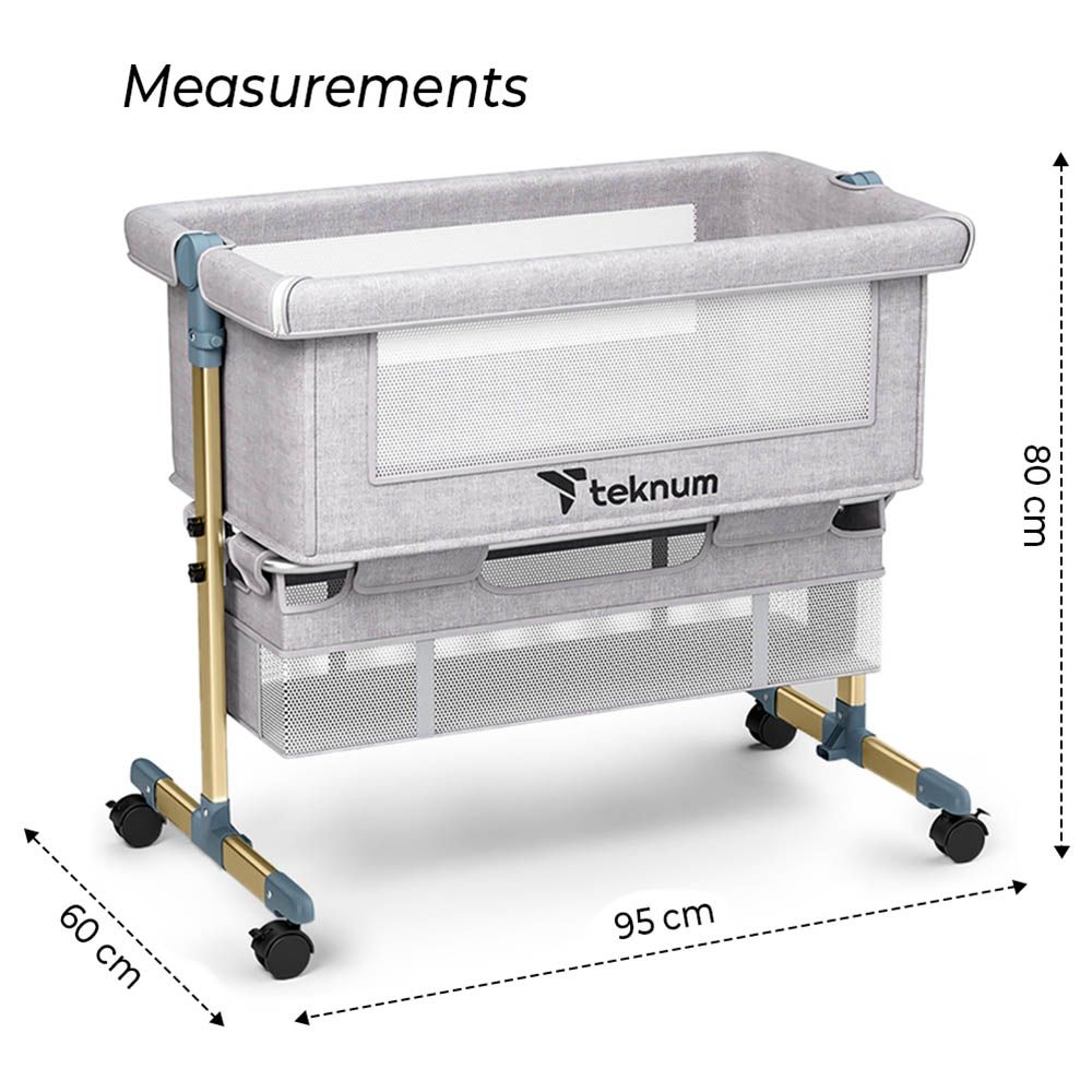 Teknum Bedside Crib is the best for both mum and the baby. The Newborn recognizes mum with the mother's scent and breathing sound. This bedside crib can be conveniently be placed next to the bed and lock wheels, so it doesn't move.