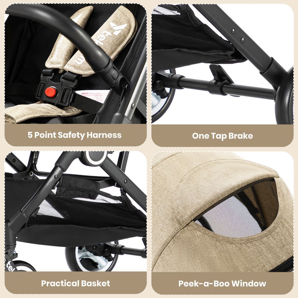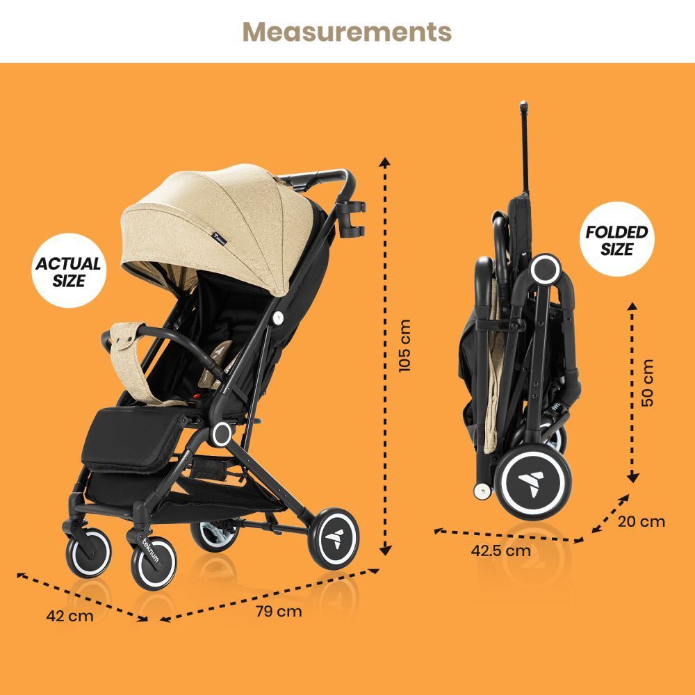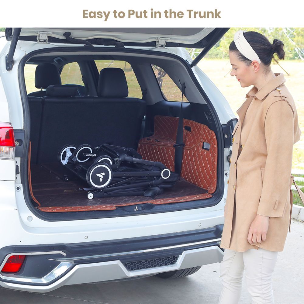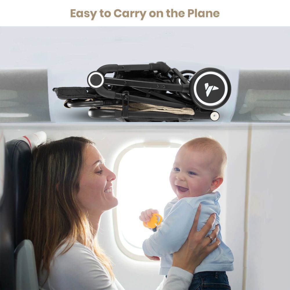 The Teknum Travel Cabin Stroller is an absolute travel essential, providing total convenience without compromising on comfort or style. Whether you're on holidays, exploring the latest urban hotspot, or simply on the move, the Teknum Travel Cabin Stroller is perfectly in tune with the needs of modern parents, seat can be reclined as per need, Comes with Big Back window. The 5.5" front and 6" rear wheels of the Teknum Travel Cabin Stroller were cleverly designed to allow parents to confidently maneuver on different surfaces throughout their day. Boasting breathable fabric, your child will keep cool even on the hottest days, while a lightweight design makes strolling an absolute breeze. And for when it's time to travel, the unique compact Push Button folding mechanism reduces the stroller and easily fits in the Airplane cabin or Boot space of any Car or The Unique Push Trolley Handle makes it extra convenient, to simply stroll. Its perfect for exploring new places, near or far with 5 - point safety harness suitable for Kids from 0 months to approximately 4 years (up to 22 Kg / 48 Lbs.)