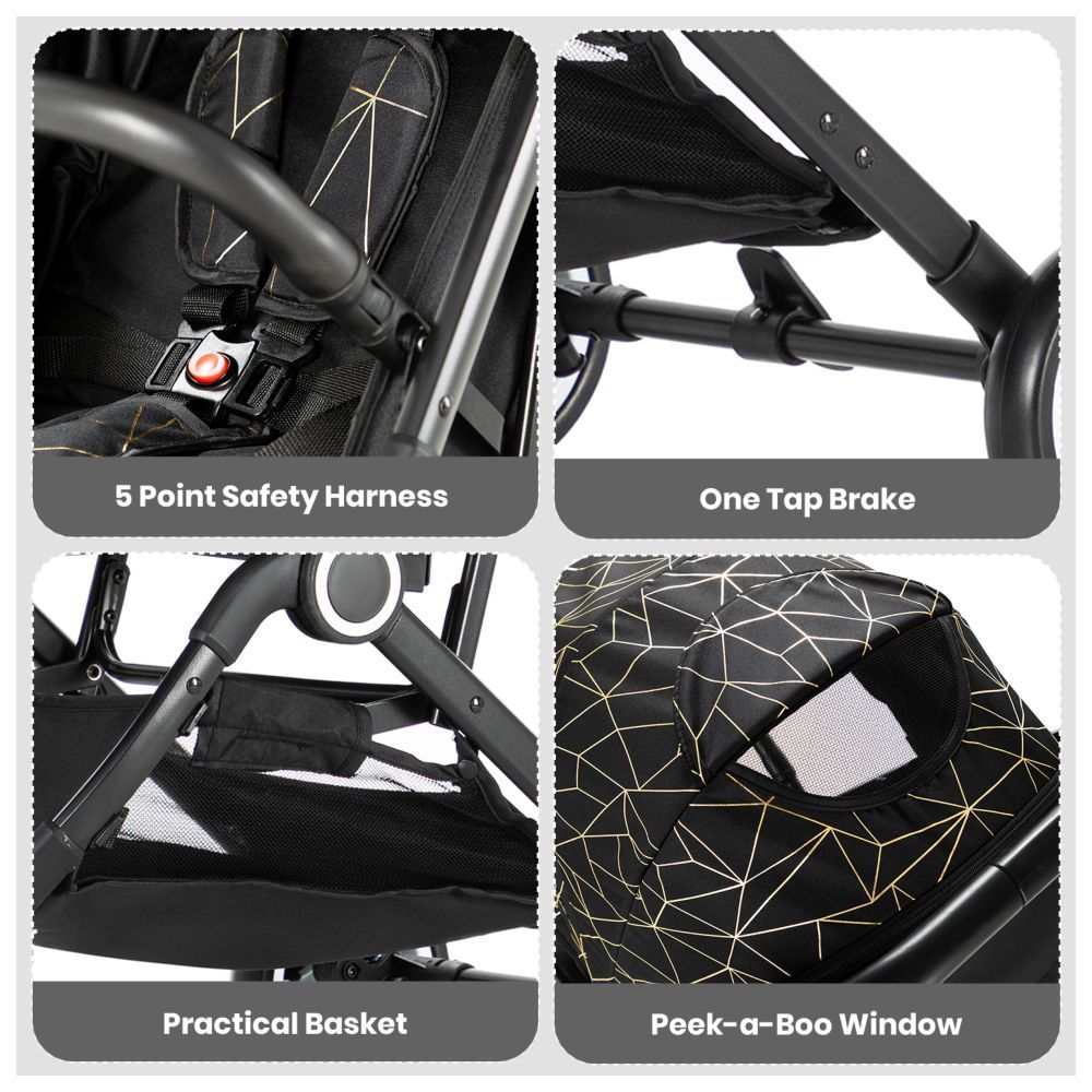 1x Teknum TravelZen Stroller with Coffee Cup Holder - Black Gold
