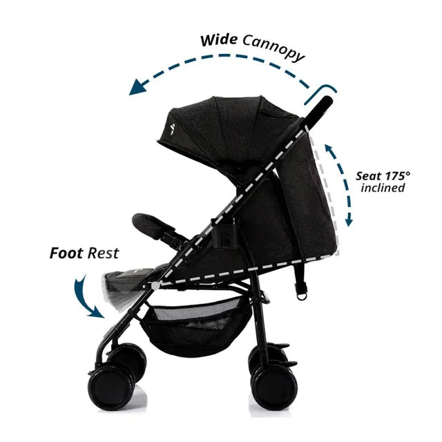 Teknum Trip Plus Stroller – a Light weight Stroller with Excellent Flexibility. The black charcoal frame and An extra wide canopy with wide seat is just perfect for the comfort of your baby.