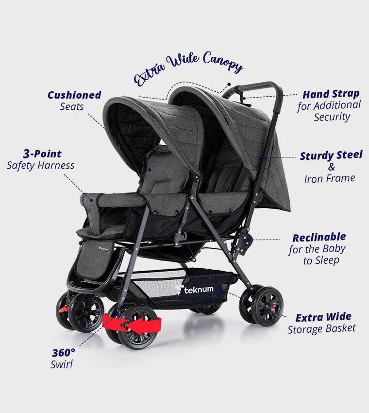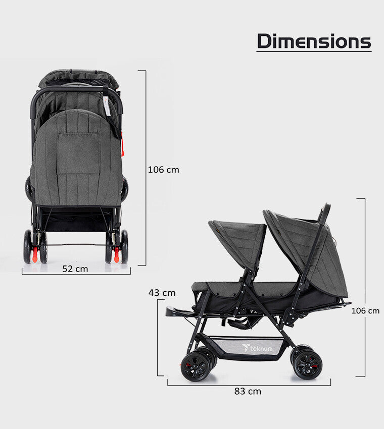 - Teknum double stroller is fit to use for kids up to 3 years for two babies each up to 15 kgs (0-15kg X 2)
