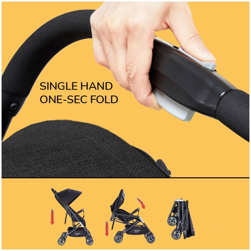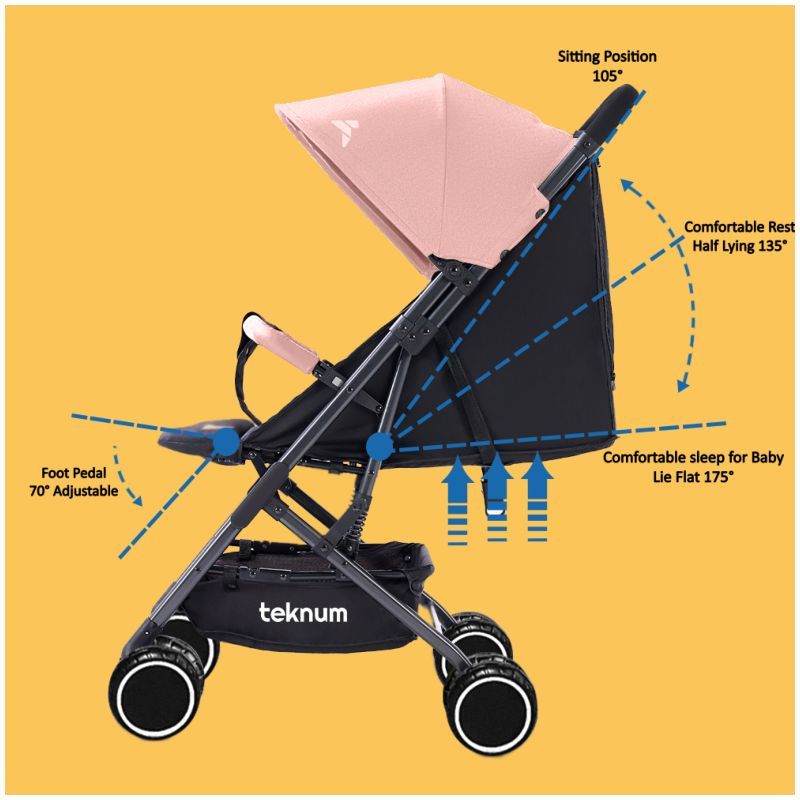 Just as Flexible as Yoga this Teknum Yoga Lite Stroller is the most Flexible, Shock Proof and Convenient stroller. Yoga Lite offers One Second Single Hand Folding/Unfolding and Pushing. It is very easy to fold and unfold within 1 second. The Stroller has special Shock Proof Drive system that is so flexible, smooth and easy to push the Stroller single handed, while making sure for smooth ride and no disturbance even if the baby is asleep. The rough roads, the Grass, the Slopes, the Desert - Just Stroll anywhere! The folded size is 53*25cm which enables to fit in Aircraft Cabin Luggage while Air travel (Cabin Luggage standards may depend on Airlines).