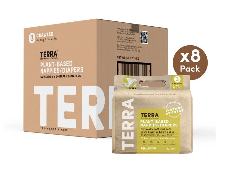 Diapers made with 85% Plant-Based Materials. 0% Chlorine, Fragrance, Latex, Parabens, Phthalates or Bleach. Breathable back sheet made with 100% biodegradable bamboo fiber. 12+ hours of breathable dryness and protection against diaper rash. Plant-Based Wetness Indicator shows how much the diaper has absorbed. Food-Safe Ink only on product & packaging. Suitable for all skin types and dermatologically rated ƒ??excellentƒ?�. 100% USA natural wood pulp. Core wrap components, wrapped with tissue paper. 3D leak guards prevent leakage and side spills--the leaks stop here! Super absorber pad, sustainable and compostable. Ultra-soft waistband for a comfortable yet sung fit every time. Water-resistant sheet, made from sustainable corn starch