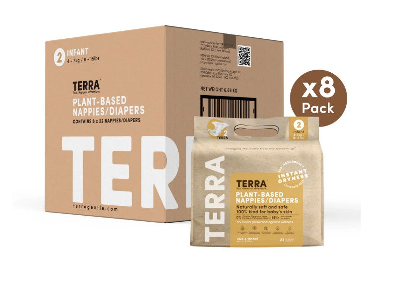 Diapers made with 85% Plant-Based Materials. 0% Chlorine, Fragrance, Latex, Parabens, Phthalates or Bleach. Breathable back sheet made with 100% biodegradable bamboo fiber. 12+ hours of breathable dryness and protection against diaper rash. Plant-Based Wetness Indicator shows how much the diaper has absorbed. Food-Safe Ink only on product & packaging. Suitable for all skin types and dermatologically rated ƒ??excellentƒ?�. 100% USA natural wood pulp. Core wrap components, wrapped with tissue paper. 3D leak guards prevent leakage and side spills--the leaks stop here! Super absorber pad, sustainable and compostable. Ultra-soft waistband for a comfortable yet sung fit every time. Water-resistant sheet, made from sustainable corn starch