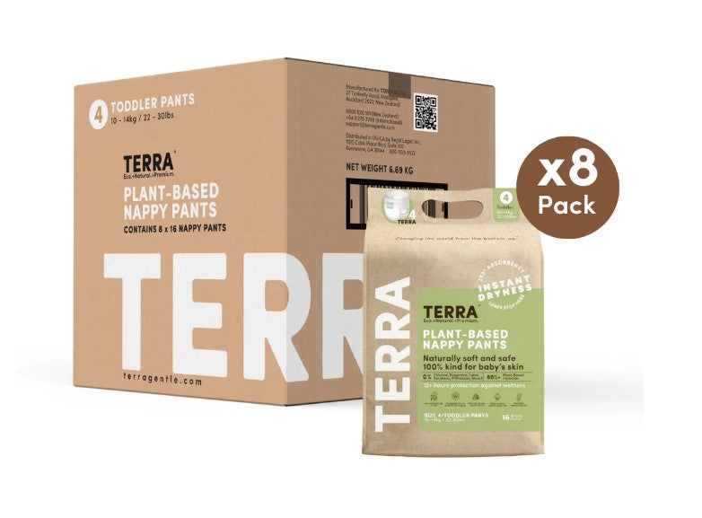 Training pants made with 85% Plant-Based Materials. 0% Chlorine, Fragrance, Latex, Parabens, Phthalates or Bleach. Breathable back sheet made with 100% biodegradable bamboo fiber. 12+ hours of breathable dryness and protection against diaper rash. Plant-Based Wetness Indicator shows how much the diaper has absorbed. Food-Safe Ink only on product & packaging. Suitable for all skin types and dermatologically rated ƒ??excellent. 100% USA natural wood pulp. Core wrap components, wrapped with tissue paper. 3D leak guards prevent leakage and side spills--the leaks stop here! Super absorber pad, sustainable and compostable. Ultra-soft waistband for a comfortable yet sung fit every time. Water-resistant sheet, made from sustainable corn starch