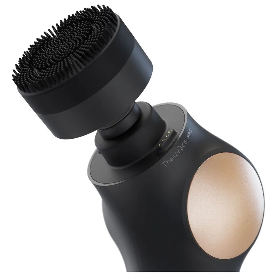 FDA-Cleared Type II Medical Device. Percussive Therapy Attachments. Relieves tension in face, jaw, neck, and head. Reduces minor facial muscle pain. Gentle 3 mm of amplitude. Firms and tightens skin. Improves muscle tone in face/neck. Gentle stimulation helps firm and plump for youthful glow. Removes build up of dirt, oil, debris. Percussive-based cleansing enhances removal of pore-blocking debris and dead skin. LED Light Ring: Red Light Therapy helps reduce wrinkles around the eyes. LED Light Ring: Blue Light Therapy helps reduce mild to moderate acne. LED Light Ring: Red+Infrared Light Therapy helps reduce wrinkles around the eyes. Warming temporarily reduces pain. Included: TheraFace PRO device, 3 percussive attachments (Cone, Micro-Point, Flat), Microcurrent Ring, LED Light Therapy Ring (Red, Blue, & Infrared Light), Cleansing Ring, TheraOne Conductive Gel (1.7 oz), Soft Carrying Bag, Stand & USB-A to USB-C charging cable.
