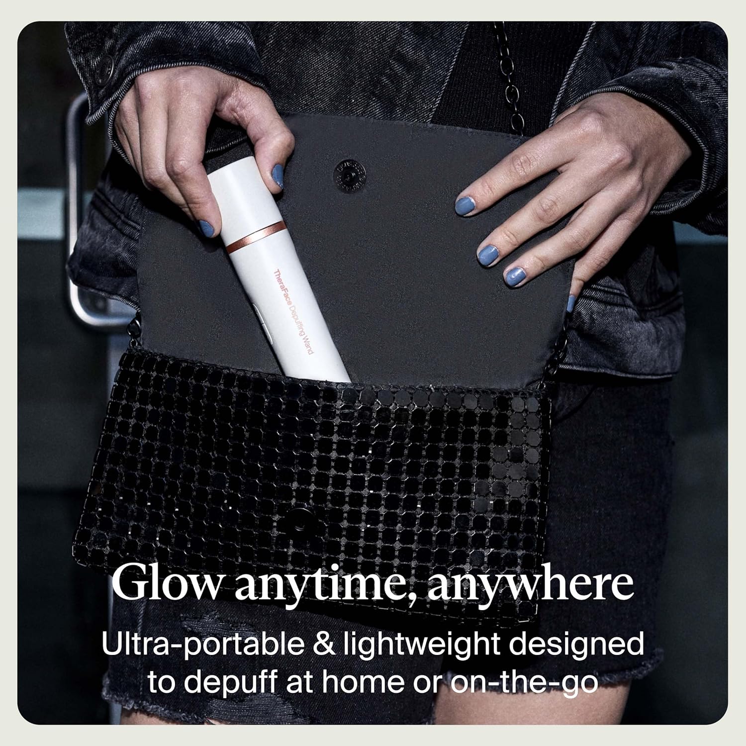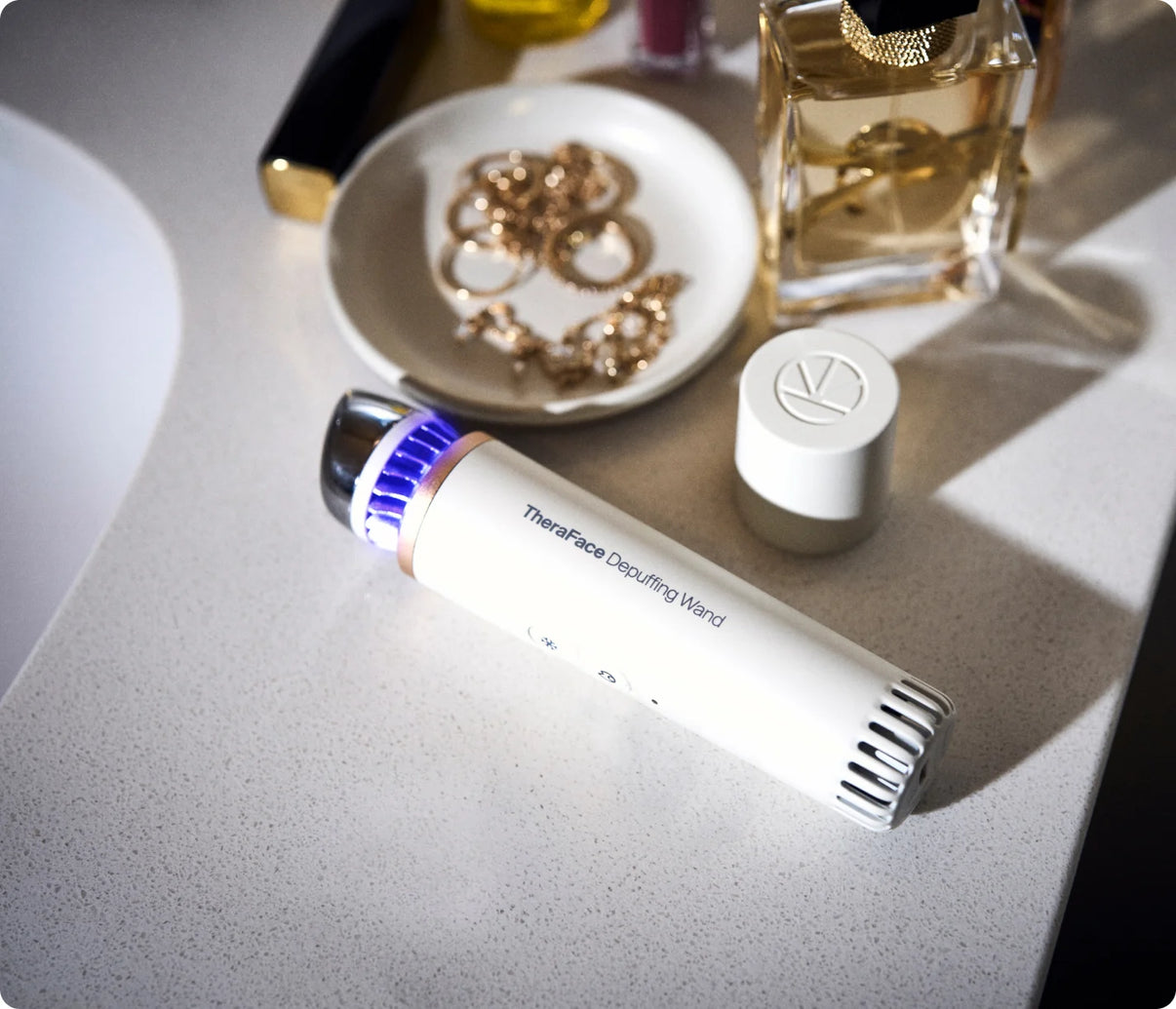Peace out, puffiness. Say hello to your new skincare hero, the first-of-its-kind TheraFace Depuffing Wand that features cold and heat facial treatments in one portable device for use at home and on-the-go. Clinical studies showed decreased puffiness and dark circles under the eyes, and enhanced radiance. It delivers science-backed temperatures that are safe for delicate skin, ensuring consistent and reliable results across your entire face. Choose from 3 preset temperature levels suitable for all skin types. The wand reaches every corner and crevice of your face with its contoured applicator tip, giving you all-over, feel-good results you can see in just minutes.