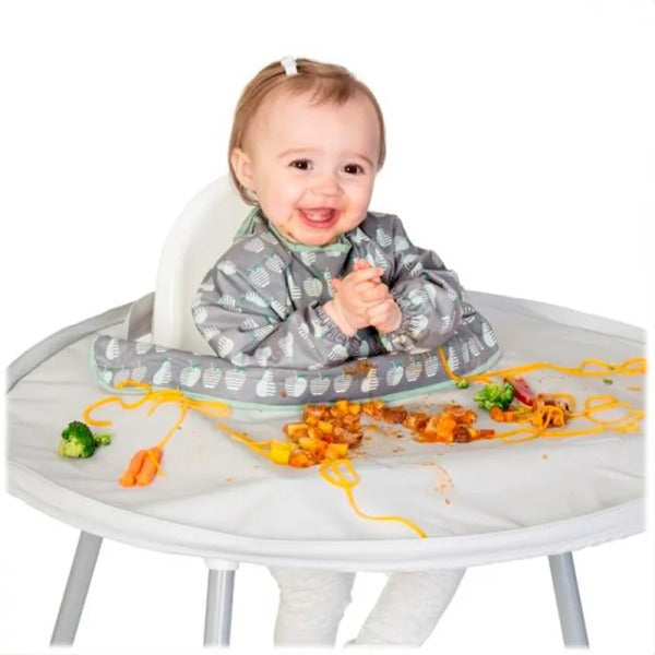 This clever coverall bib attaches to any smooth surface to catch dropped food and spills. Simply attach the suction cups to your highchair, highchair tray or smooth table surface – it’s so quick and easy to use! Zip carry bag included.