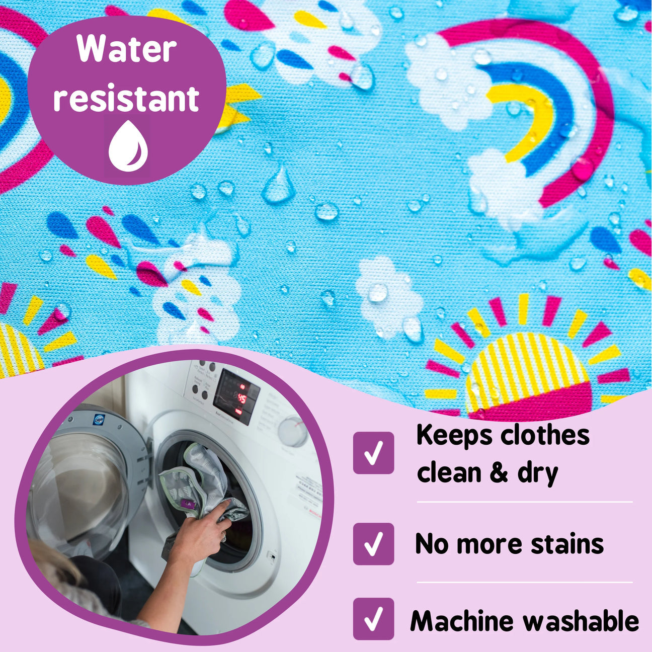 This clever coverall bib attaches to any smooth surface to catch dropped food and spills. Simply attach the suction cups to your highchair, highchair tray or smooth table surface – it’s so quick and easy to use! Zip carry bag included.