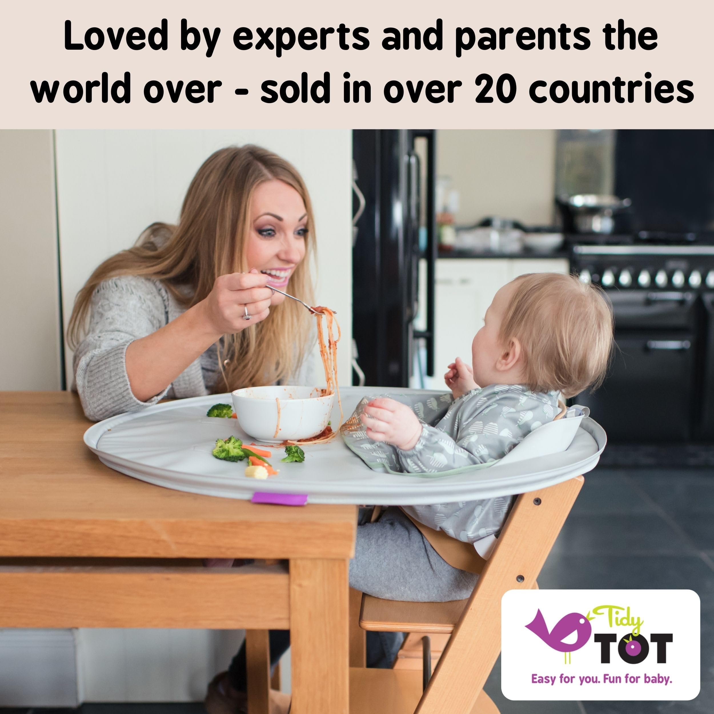 - The Tidy Tot bib attaches to the tray with a Velcro to eliminate any gap between baby and chair and protect your child's clothes. Additional bibs available for purchase.