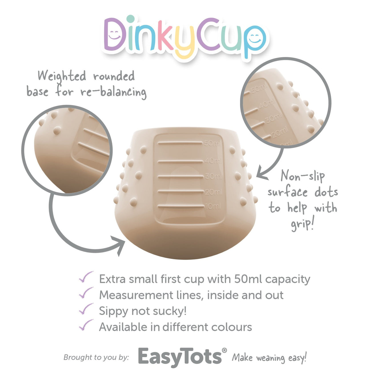 Tidy Tot Dinky Cup is EXTRA SMALL FOR A GOOD REASON: The new Dinky' sized open cup is made to measure for tiny hands and mouths. Help your baby transition straight from breast or bottle to independent sipping from as young as 4 months.
