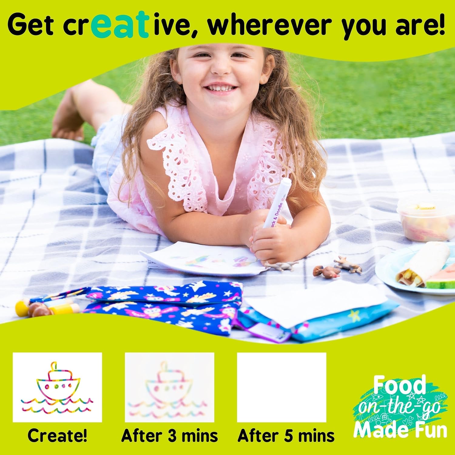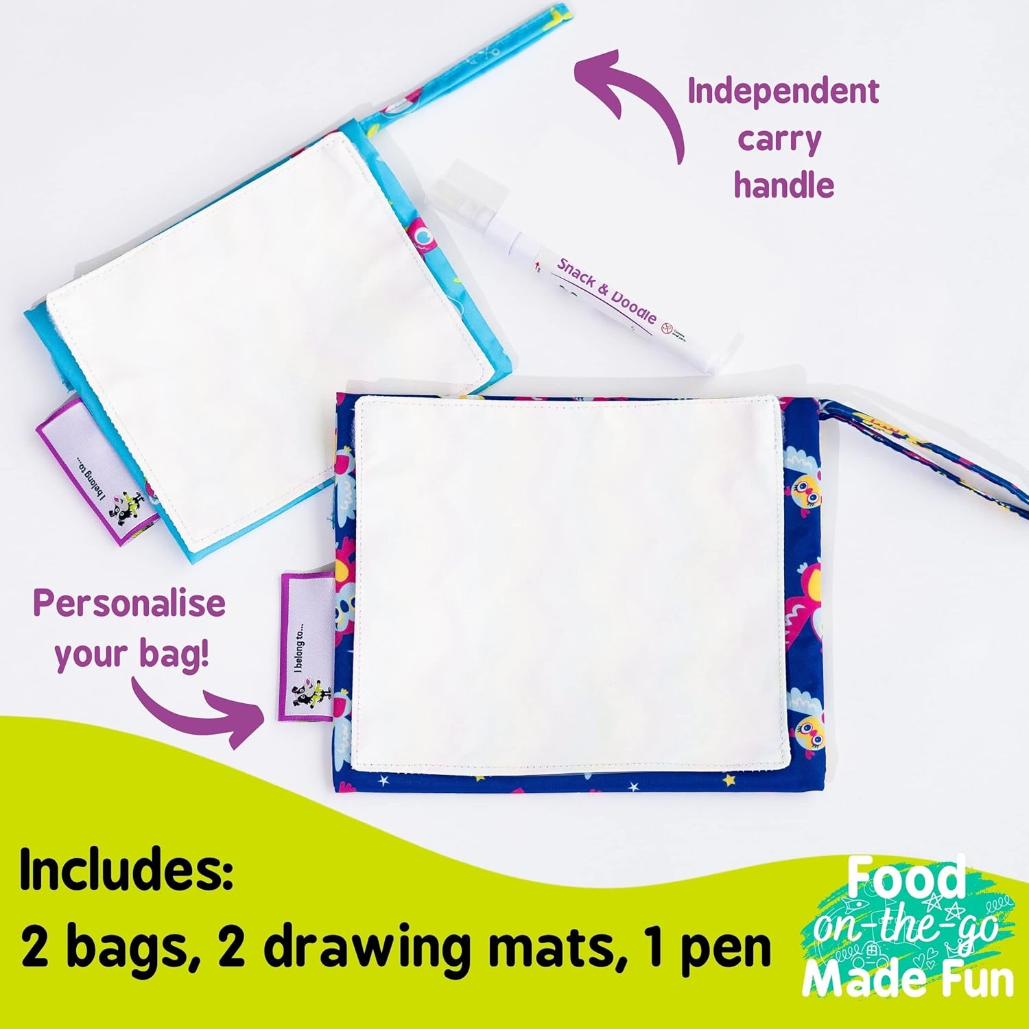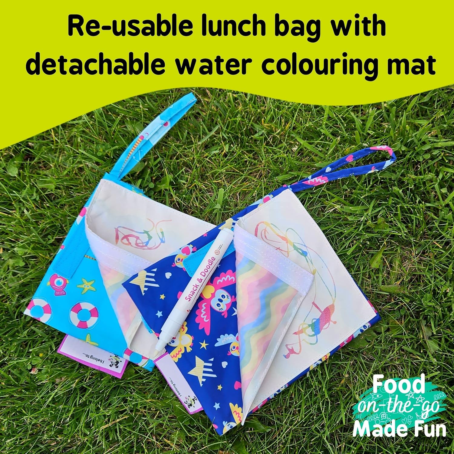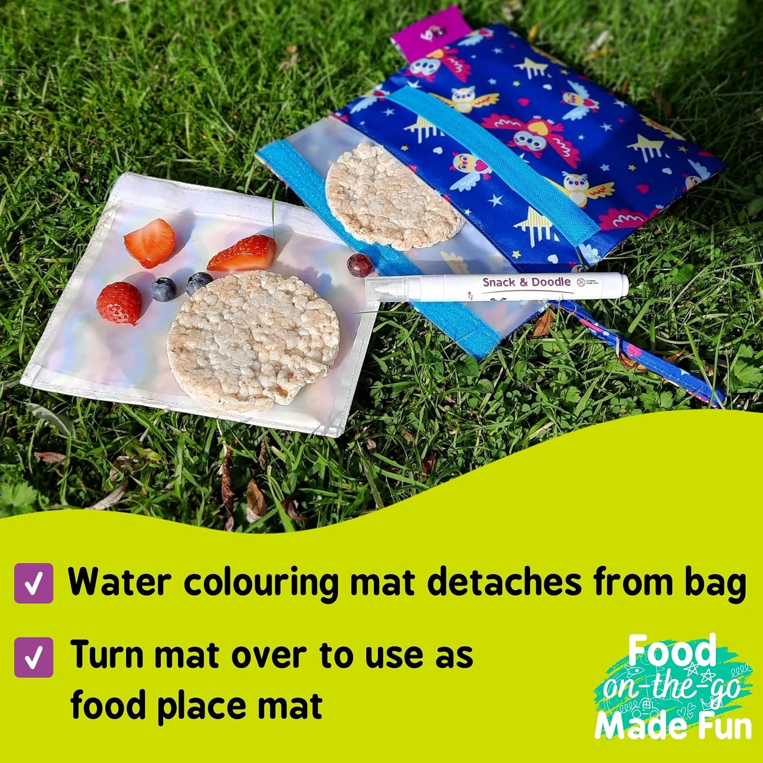 Tidy Tot Snack & Doodle – the snack bags that think they’re a toy! Well never! Turn these brightly colored snack bags over to find a detachable water doodle mat and a refillable water pen for hours of creative fun! Durable, reusable and large enough to hold a packed lunch for even the hungriest of toddlers, the back of the water doodle mat also doubles as a food-safe place mat, providing a hygienic surface to eat from anywhere you go!