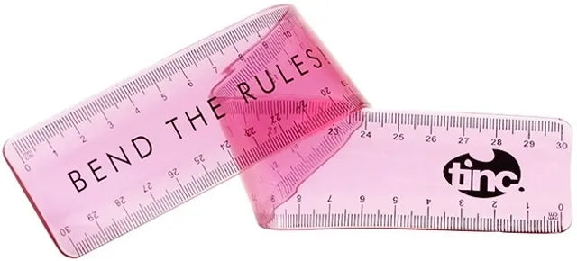 Tinc's black bendy ruler measures 30cm long and you can bend the rules by simply rolling it up to fit into smaller spaces or pencil cases. If you can't break the rules at least you can now bend them!