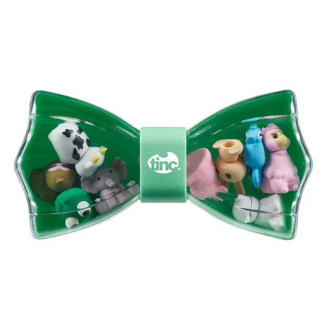 A selection of fun & colourful animal erasers! This cute eraser set collection in a mint green bow shaped carry case makes a great gift for a friend or loved one, or is perfect to use as a party bag favour for your friends to take home and enjoy.