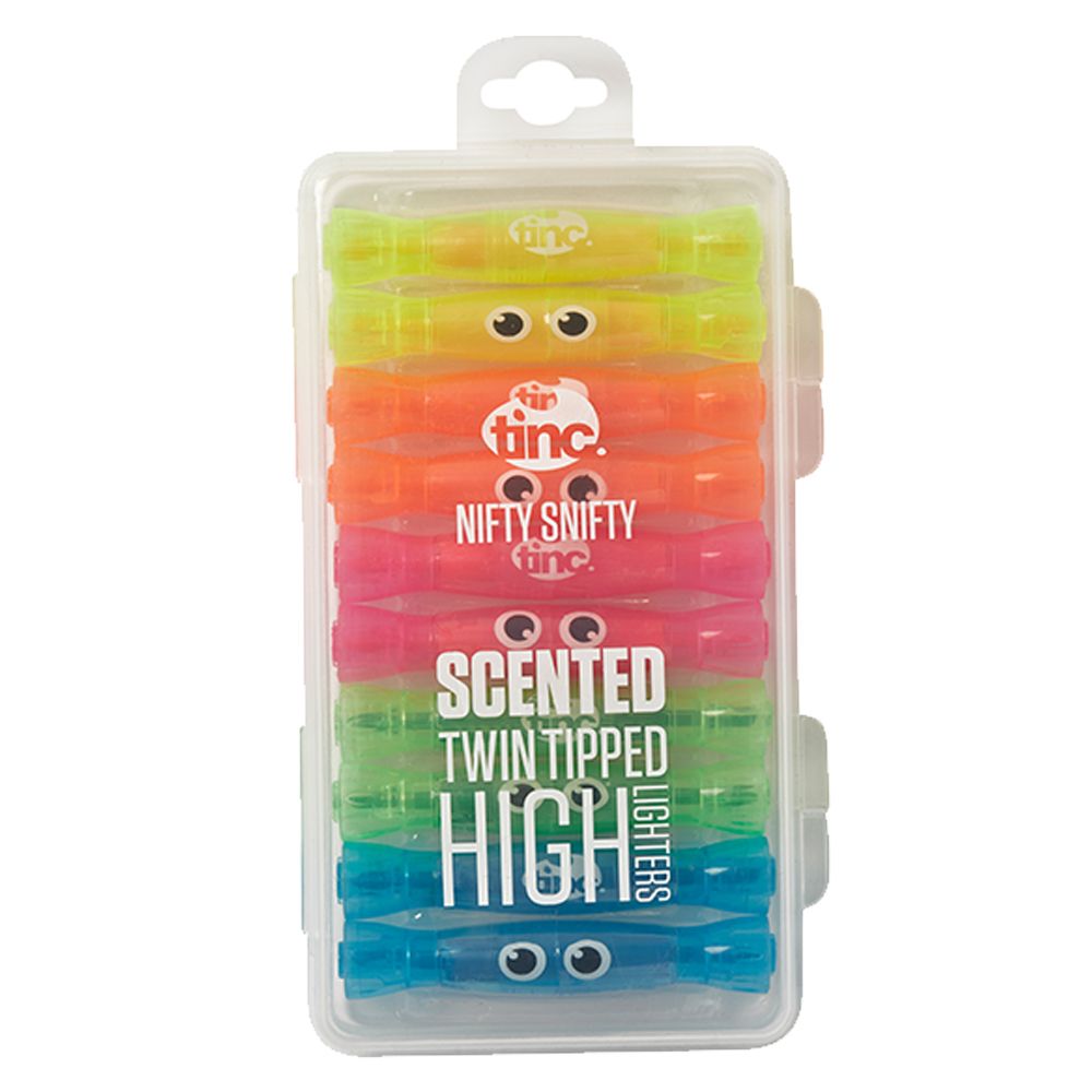 Color and smell the goodness of fruit scents! Create great impressions on the notebook or artwork with the Tinc double tipped highlighters. The pack comes with 10 double tipped highlighters. The color intensive ink gives better visibility and it has pleasant scent. The ink is lightfast. This highlighter is perfect for left-handed users because of its fast drying ink. The highlighter is really huge for need.