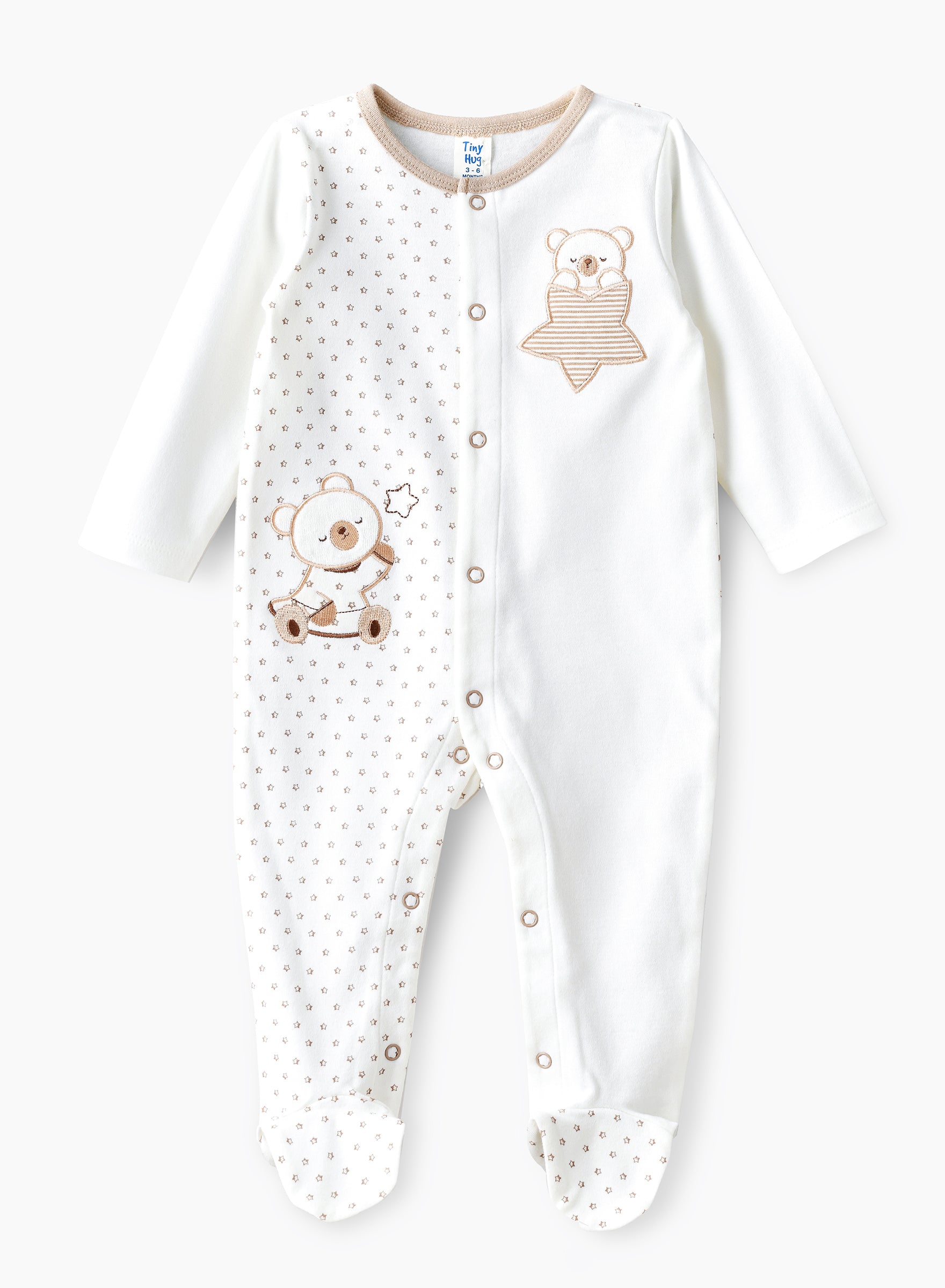 Tiny Hug Baby Boys' Cotton Knit Sleepsuit - White & Beige