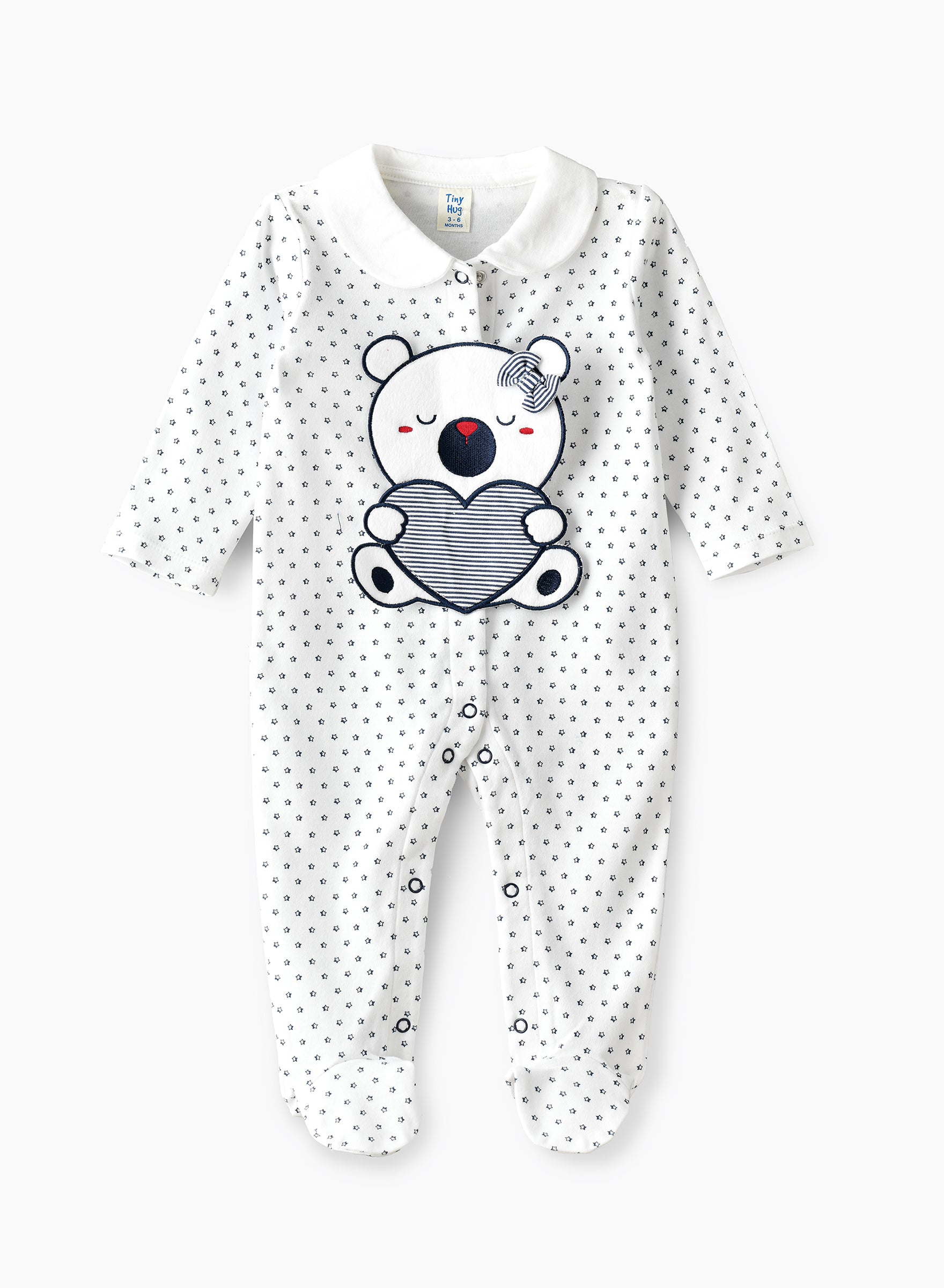 Say goodbye to sleepless nights with this cotton knit sleepsuit for your precious newborn boy. Crafted from 100% premium cotton, this sleepsuit provides ultimate comfort and breathability for a peaceful night's sleep. The soft, stretchy knit allows for easy movement, and the footed design keeps your baby warm all night long.