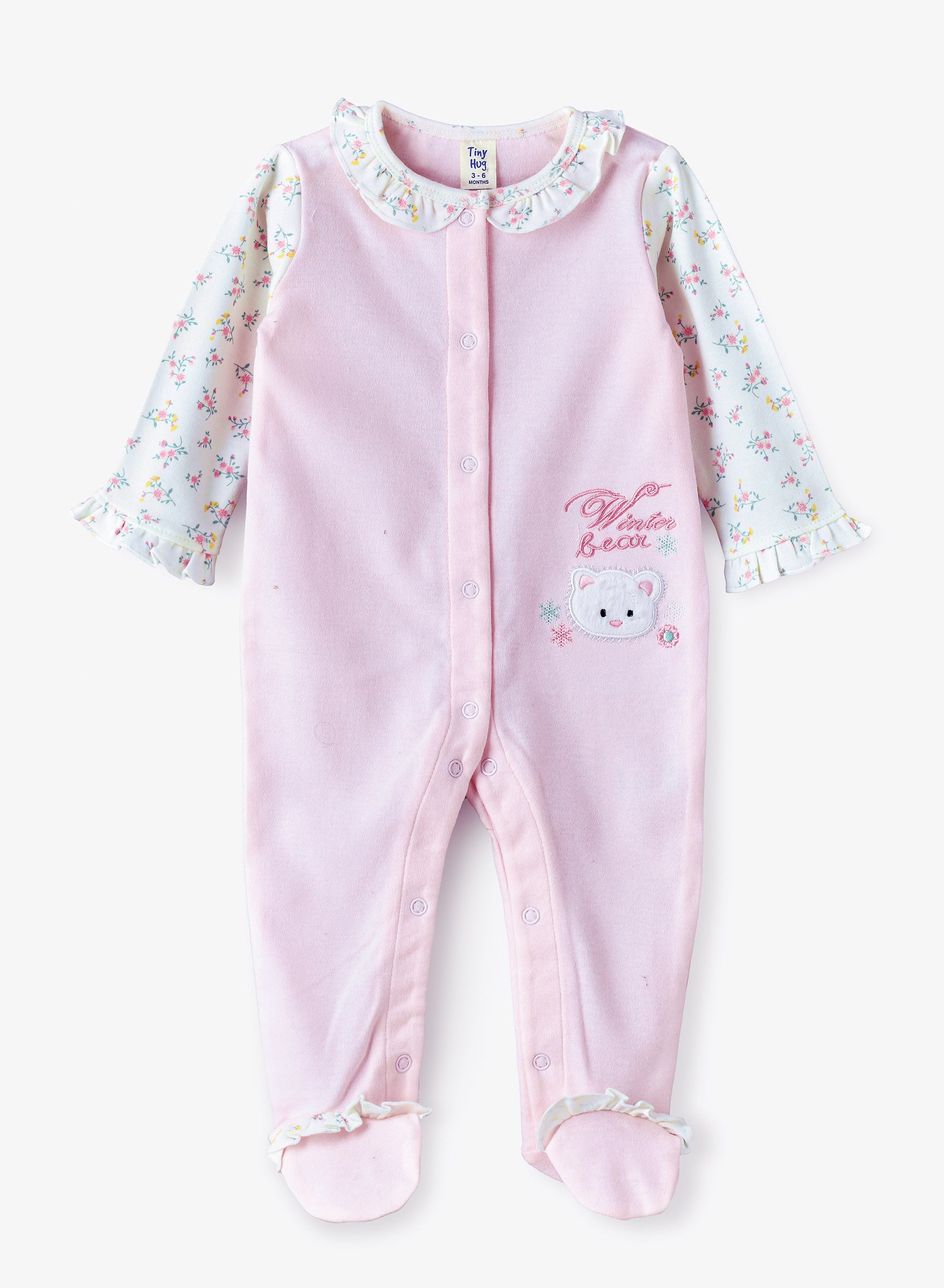 Tiny Hug Baby Girls Cotton Knit Sleepsuit - Floral Pink