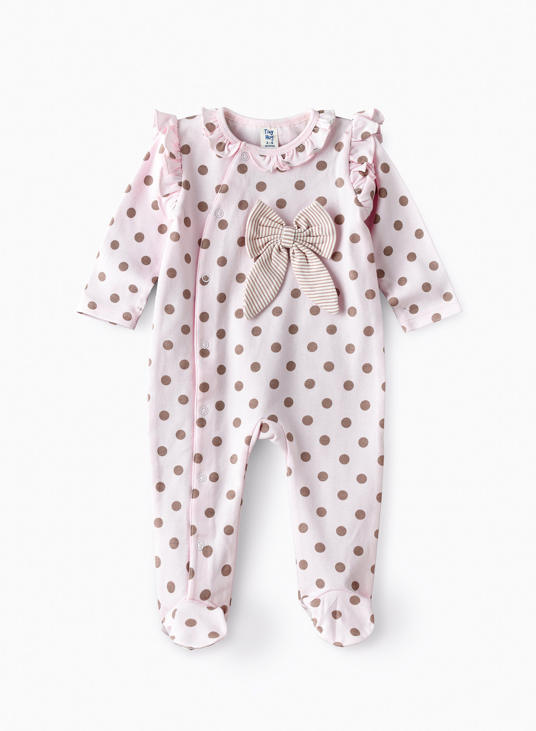 Tiny Hug Baby Girls Cotton Knit Sleepsuit - Polka Dot Pink