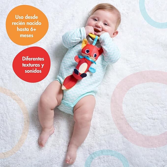 Charming on the go toy that produces sweet sounding audio feedback that stimulates the senses and helps develop fine motor skills. Engaging high-contrast basic colors especially appropriate for young babies. Featuring Christopher, an all-smiles inquisitive fox named after the great explorer, Christopher Columbus