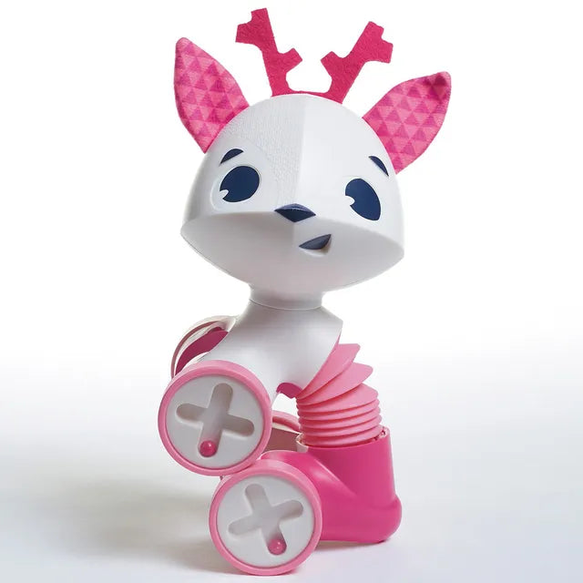 Florence the fawn is an adorable rolling toy. The pink fawn has a flexible body, A spinning ball with beads and crinkly fabrics for endless fun. The engaging activities of this baby toy stimulate the following developmental wonders: emotional intelligence, gross motor skills, fine motor skills and language & communication.