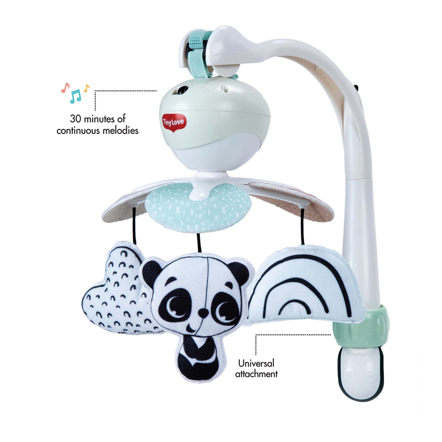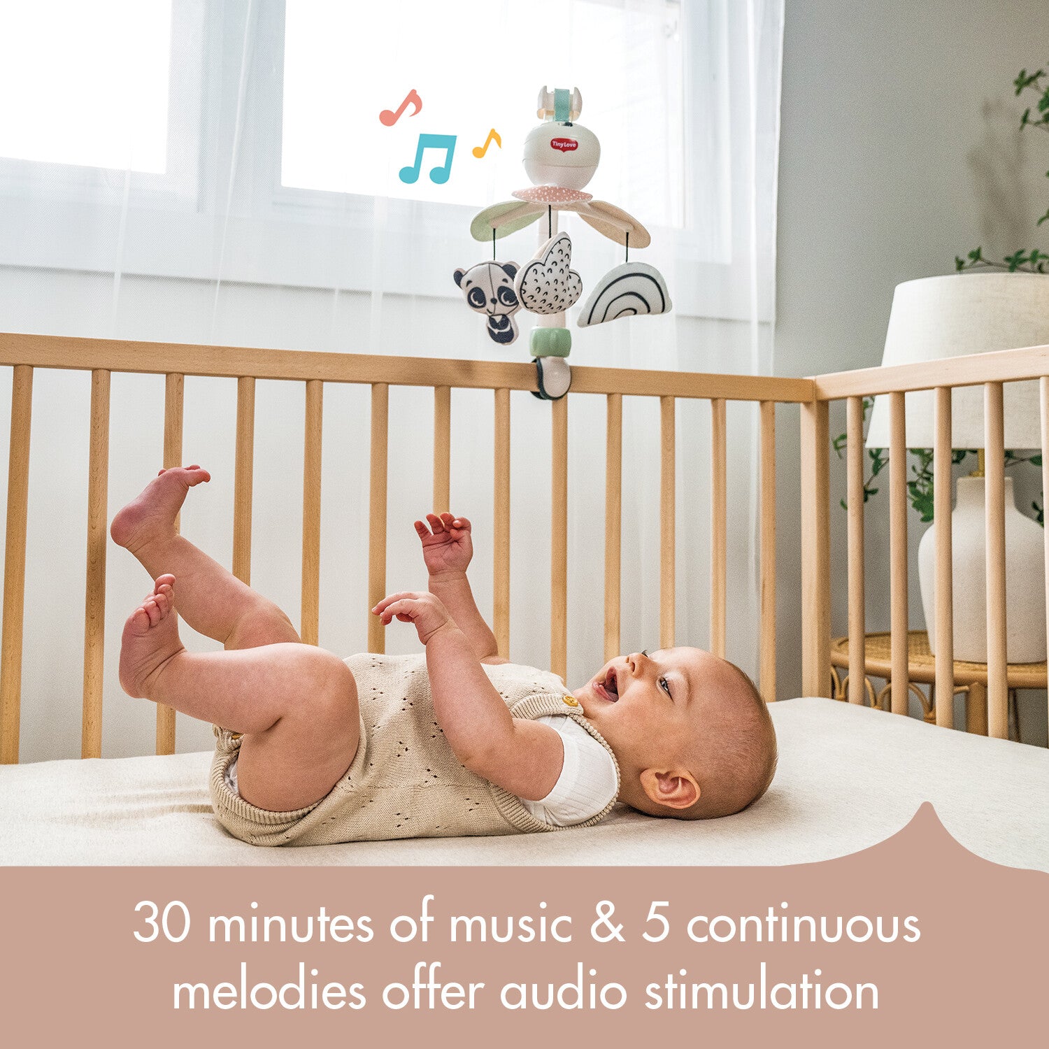 - Let your little one lie under the mobile, at home or on the go, and enjoy the slow rotating movement.