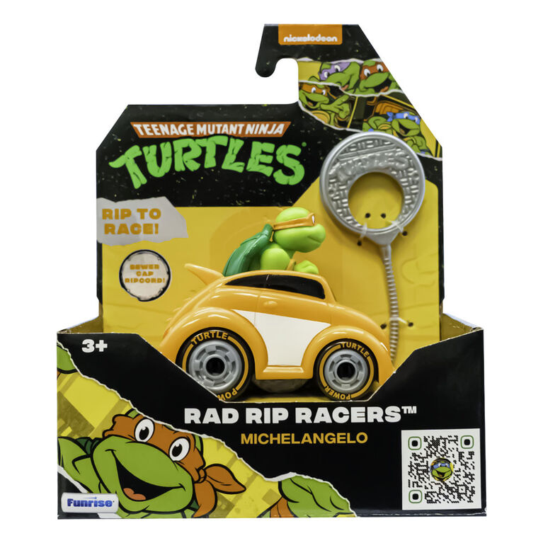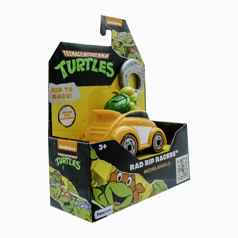 The Teenage Mutant Ninja Turtles Rad Rip Racers are built to race and designed with your favorite TMNT characters! Simply insert the ripcord into the vehicle, pull the ripcord tab and watch the Ninja Turtles go! Available in 4 different vehicle models and characters. Rip and race with Leonardo, Michelangelo, Donatello, and Raphael. Collect them all