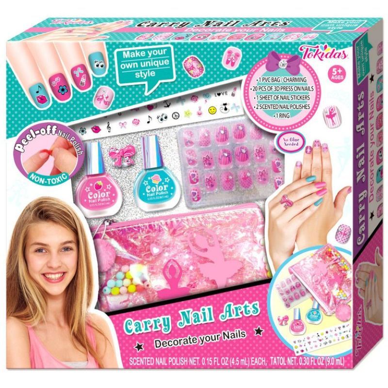 Make your own unique style. Non-toxic peelable nail polish. Decorative nail art., Contains:2 Bottles of Nail Polishes,1 Sheet of Nail Sticker, 20Pcs Press on Nails,1 PVC bag with Charming . 1 Ring