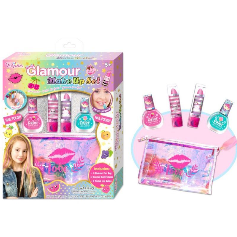 Be ready everytime with Tokidas glamour make up set. Complete your beauty needs In seconds. Small and compact with color and enjoyment., Contains:1 Glamour PVC Bag, 2 Scented Nail Polishes, 2 Lip Sticks.