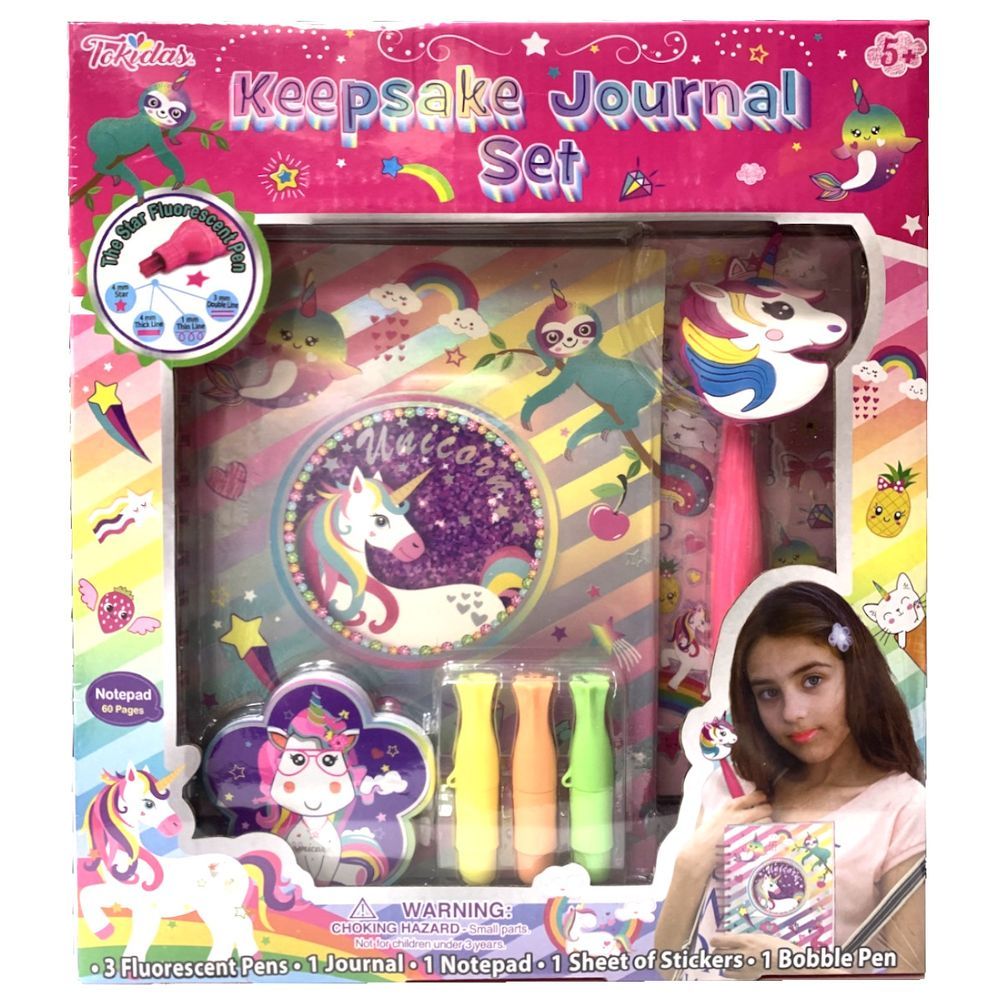 This mini memory book is the perfect activity for birthday parties, rainy days, sleepovers and more! Add photos, cartoon stickers and more to relive your happy experiences time and time again and create a stylish and trendy keepsake! Remember all the fun times you've had with your friends by decorating this scrapbook kit, which features plenty of crafty signs and accessories! , , 1 Keepsake Journal Set, 1 Bobble Pen, 3 Shaped markers, 1 Sheet of Stickers, 1 Flower-shape Sticky Notepad.