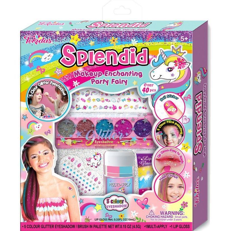 Enjoy unicorn theme enchanting make up set with over 40 pcs of accessories. Make glitter like you never did before., Contains:3 Color Scented Nail Polishes?1 Hair Chalk/Pink, Purple Colour,1 Glitter Lip Gloss, 4 Colour Eyeshadow in Palette, 1 Nail Separator ,1 Nail File