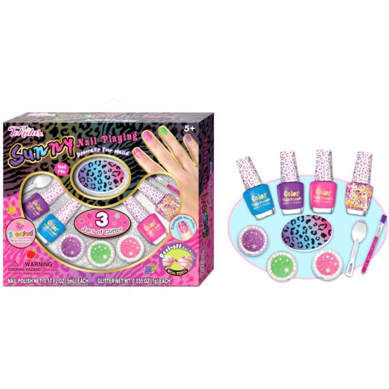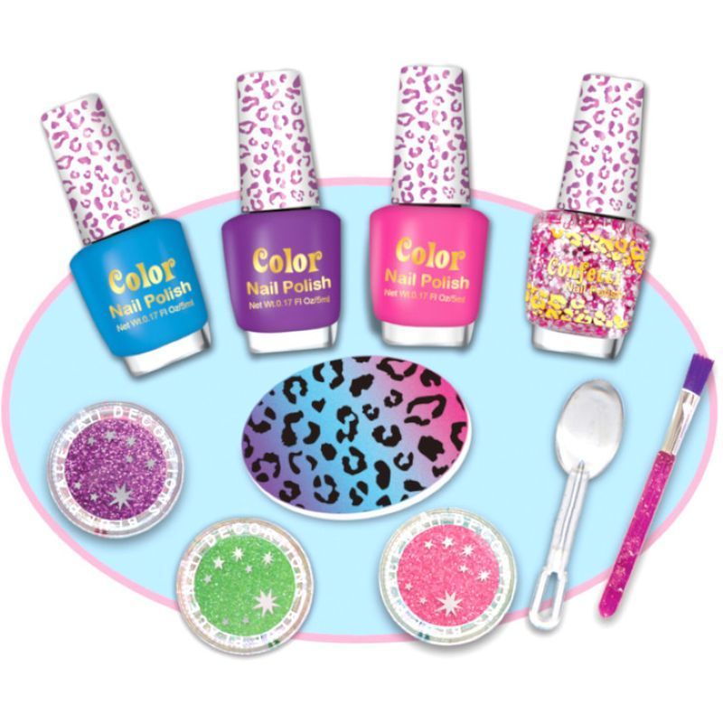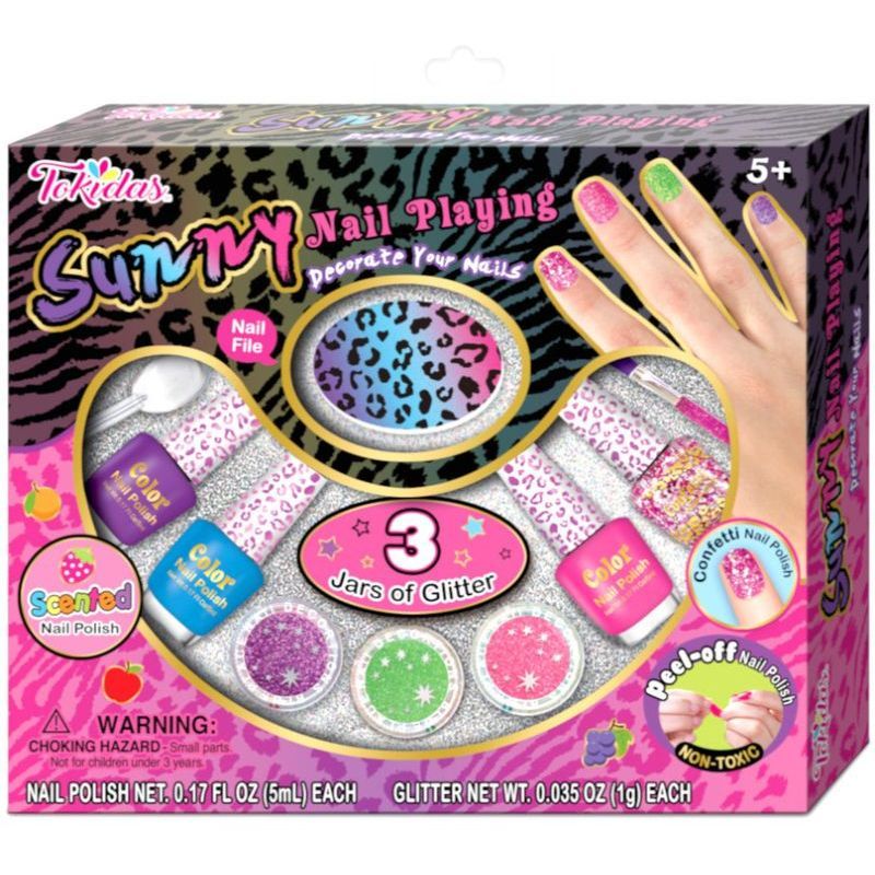 Girls will love painting their nails and creating cool designs with bright scented nail polishes. Water-based polished easily peel off. No harsh chemicals are needed for polish removal. The matching glitter powders make fingernails more attractive and shiny.