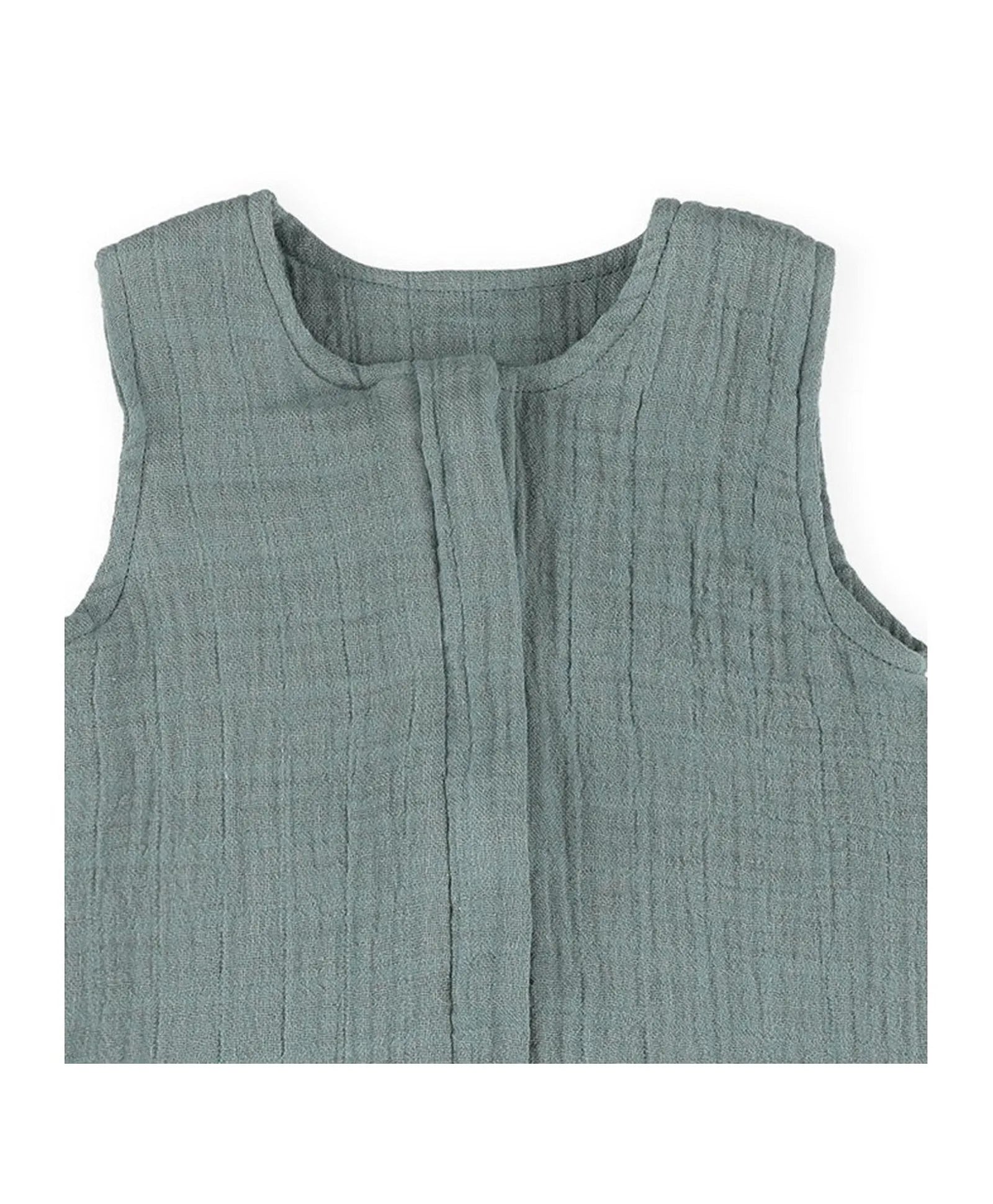 This summer sleeping bag without sleeves and in soft muslin fabric is perfect for warm summer months. The muslin cotton is breathable, soft and comfy.