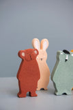 All items are carefully handpainted with water based paints which are totally harmless for babies. The handpainted process makes each toy unique as you might see slight variations in colour and/or shape.