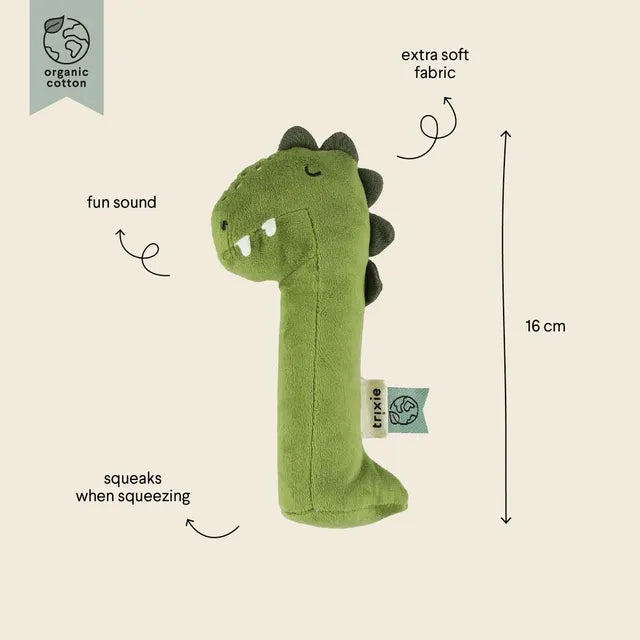 This little friend can be grasped by the tiniest hands. Small and soft, it gives a short, loud ‘squeak’ when squeezing it.